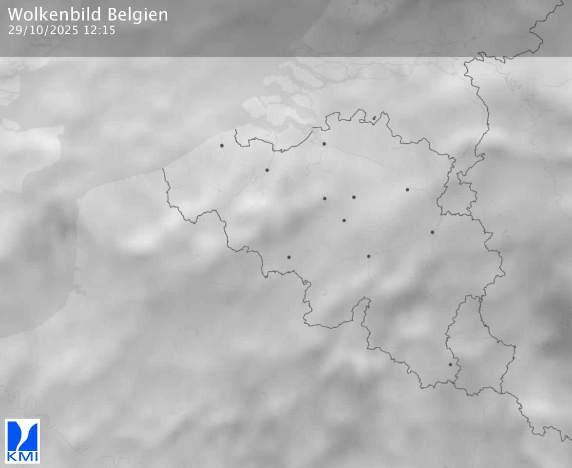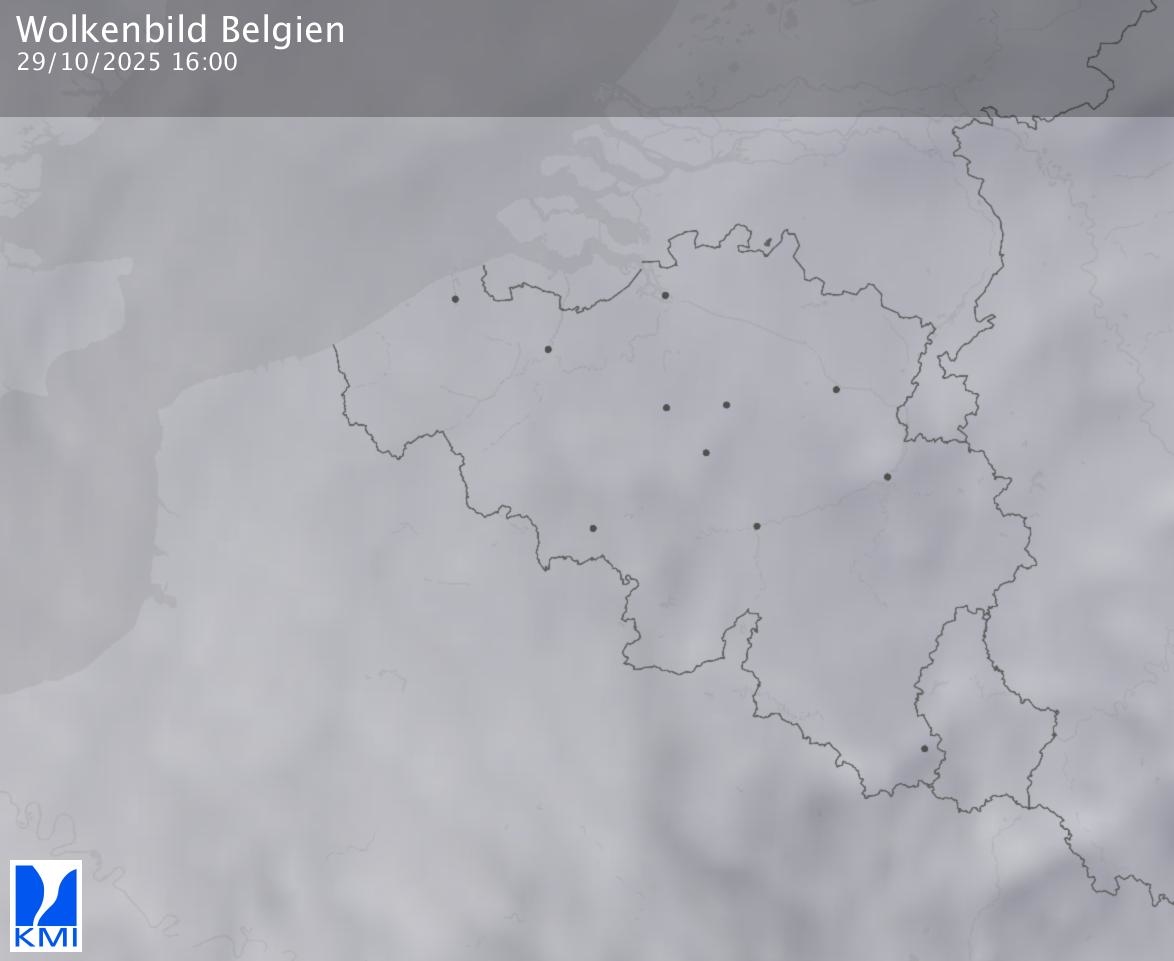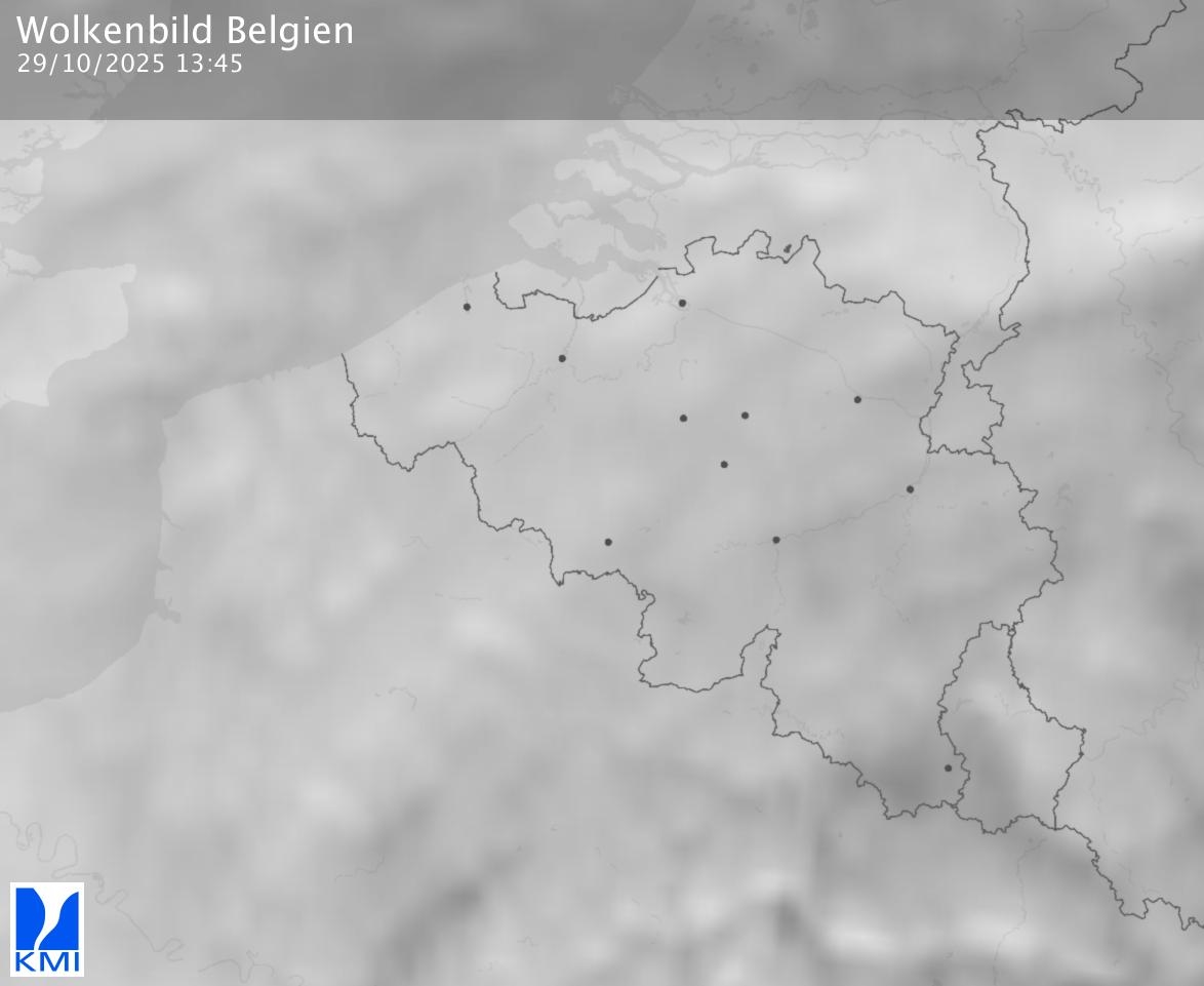 Das Wolkenbild Belgiens ist eine Kombination der sichtbaren und Infrarotkanäle des Satelliten.