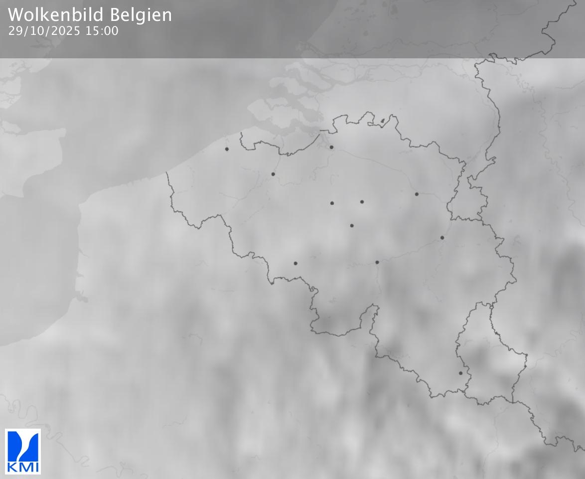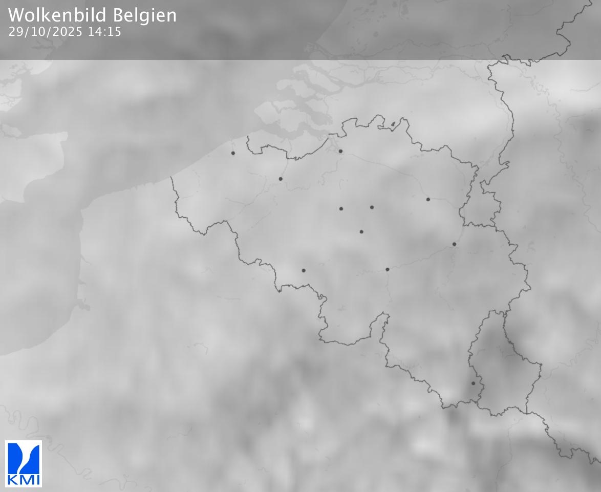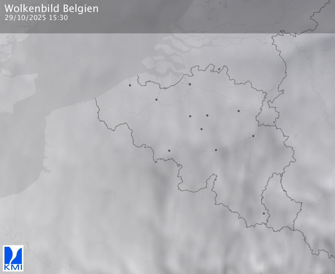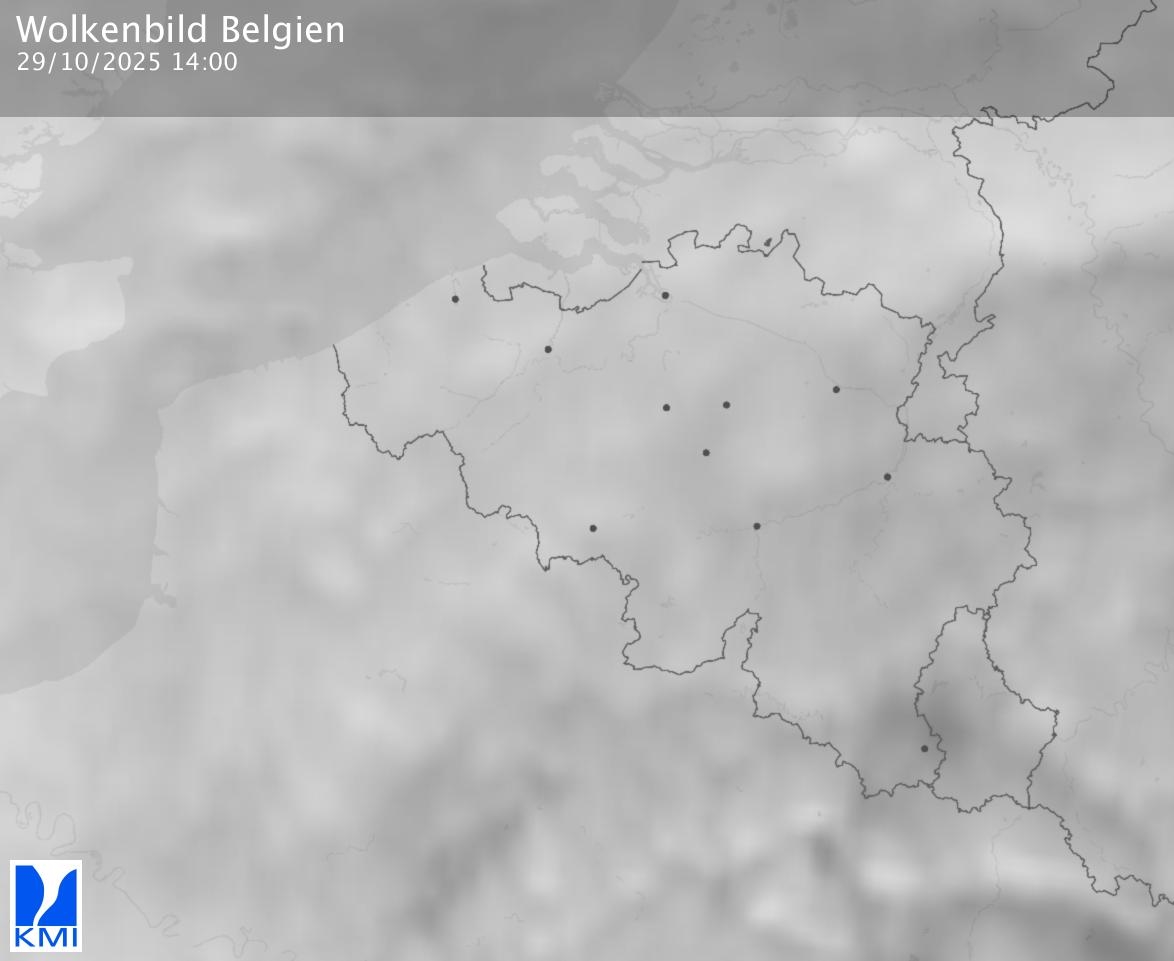 Das Wolkenbild Belgiens ist eine Kombination der sichtbaren und Infrarotkanäle des Satelliten.