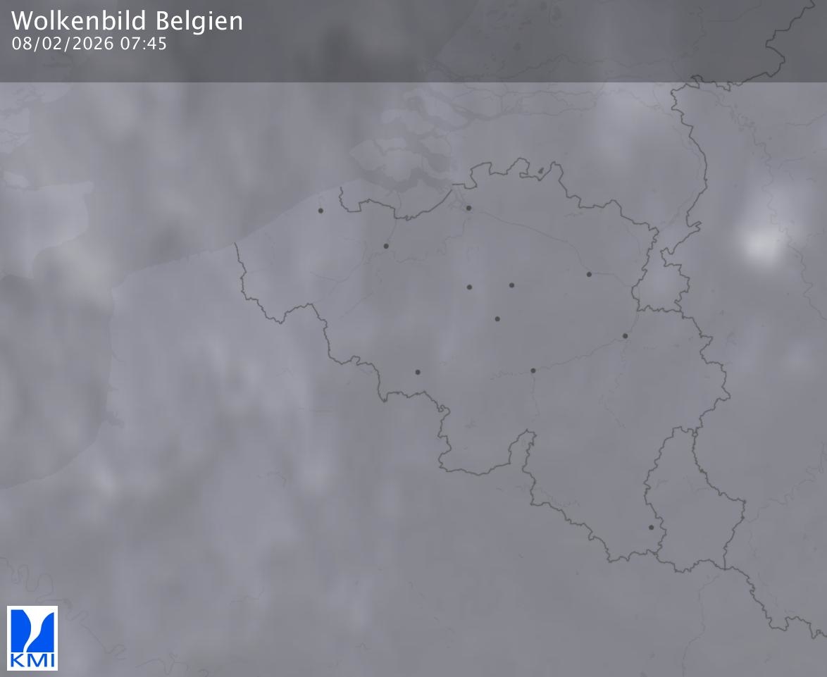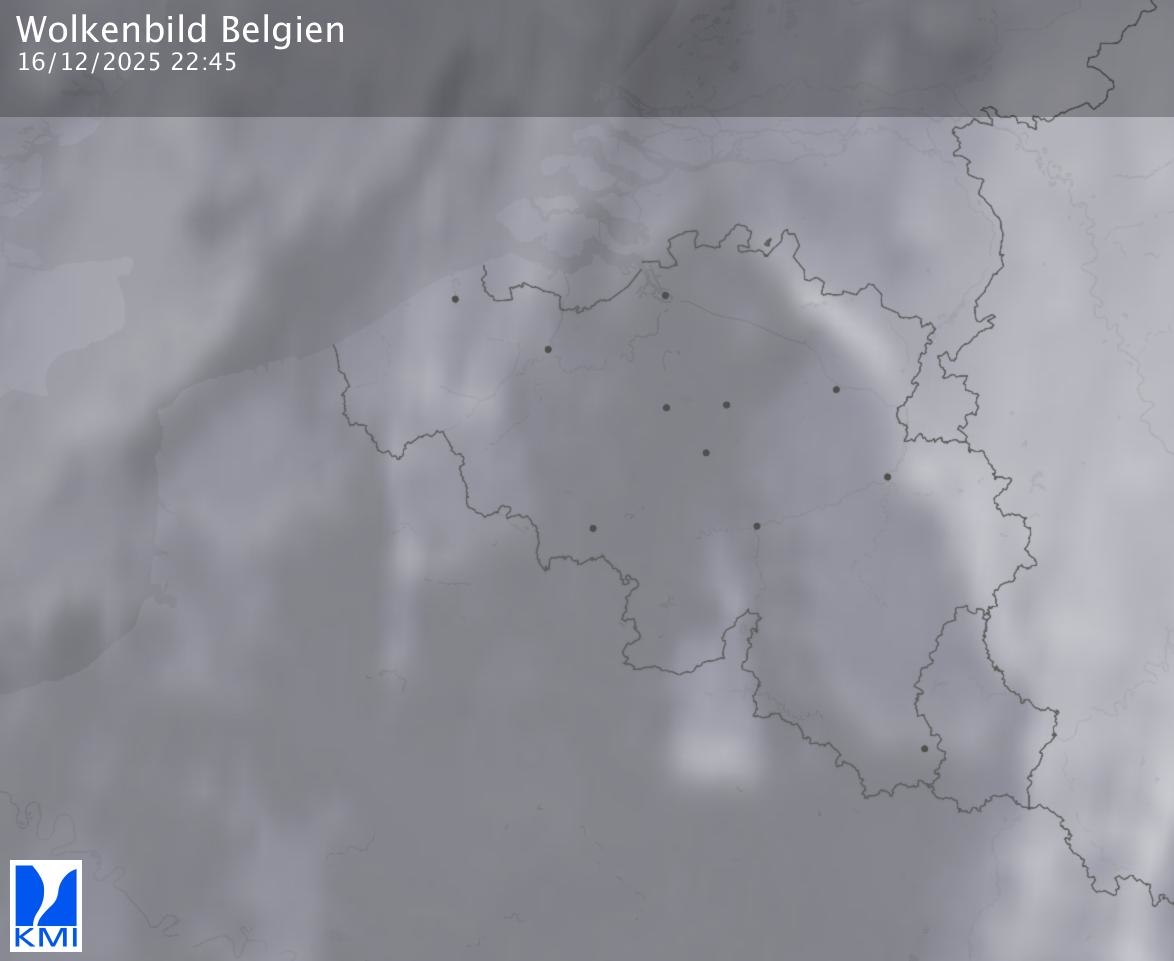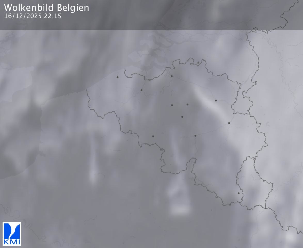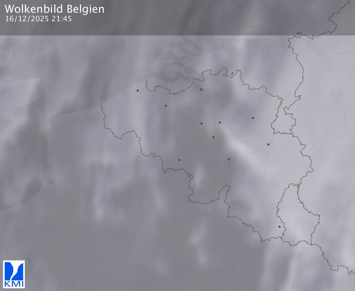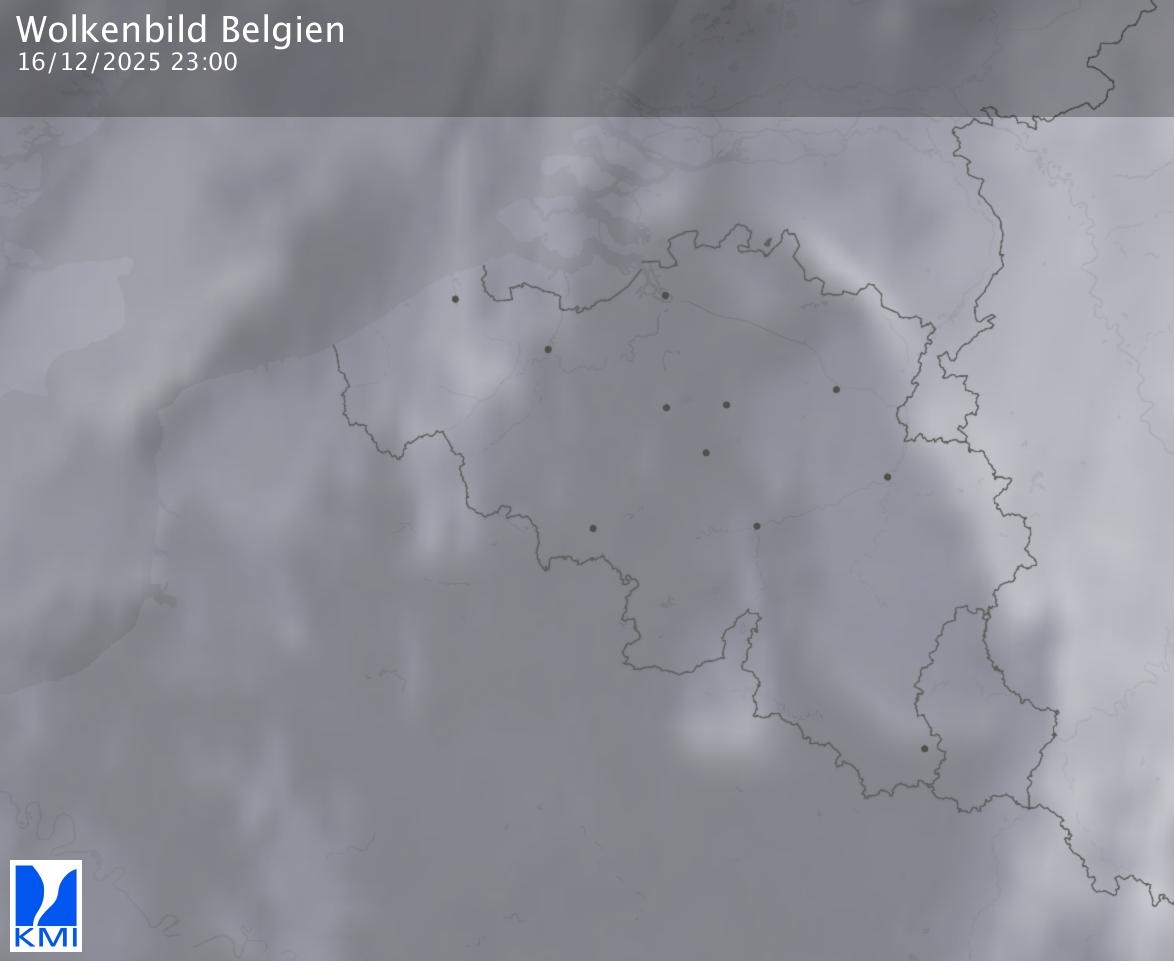 Das Wolkenbild Belgiens ist eine Kombination der sichtbaren und Infrarotkanäle des Satelliten.