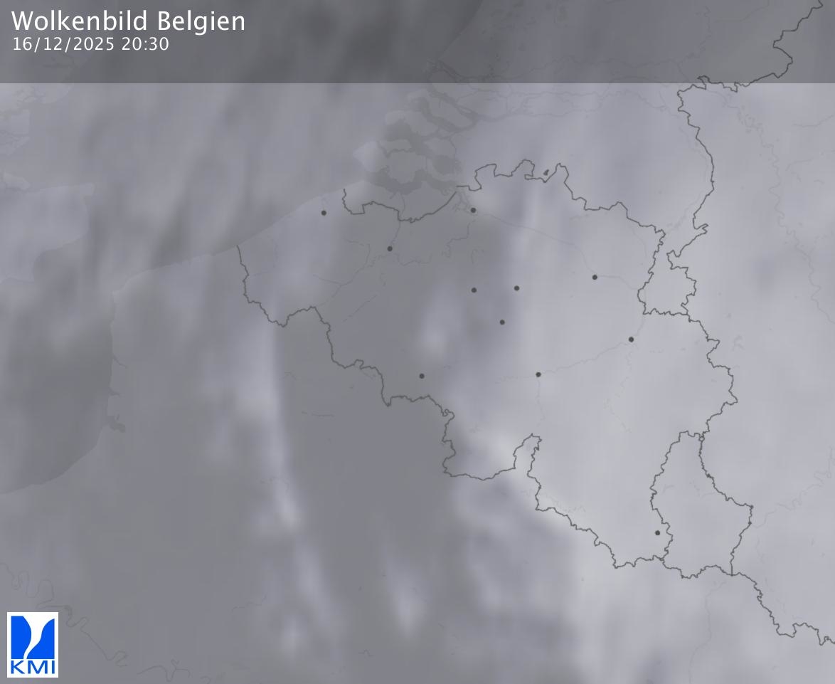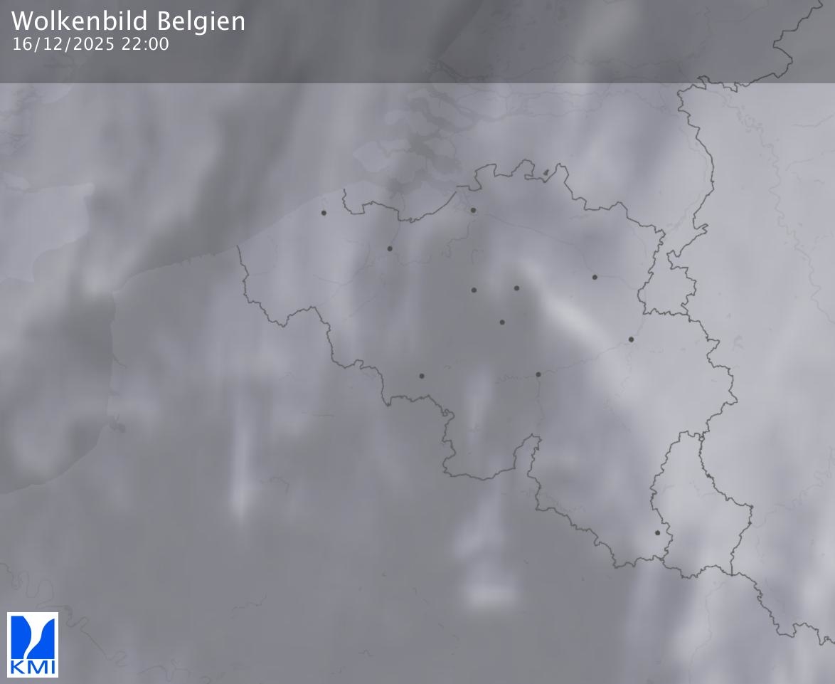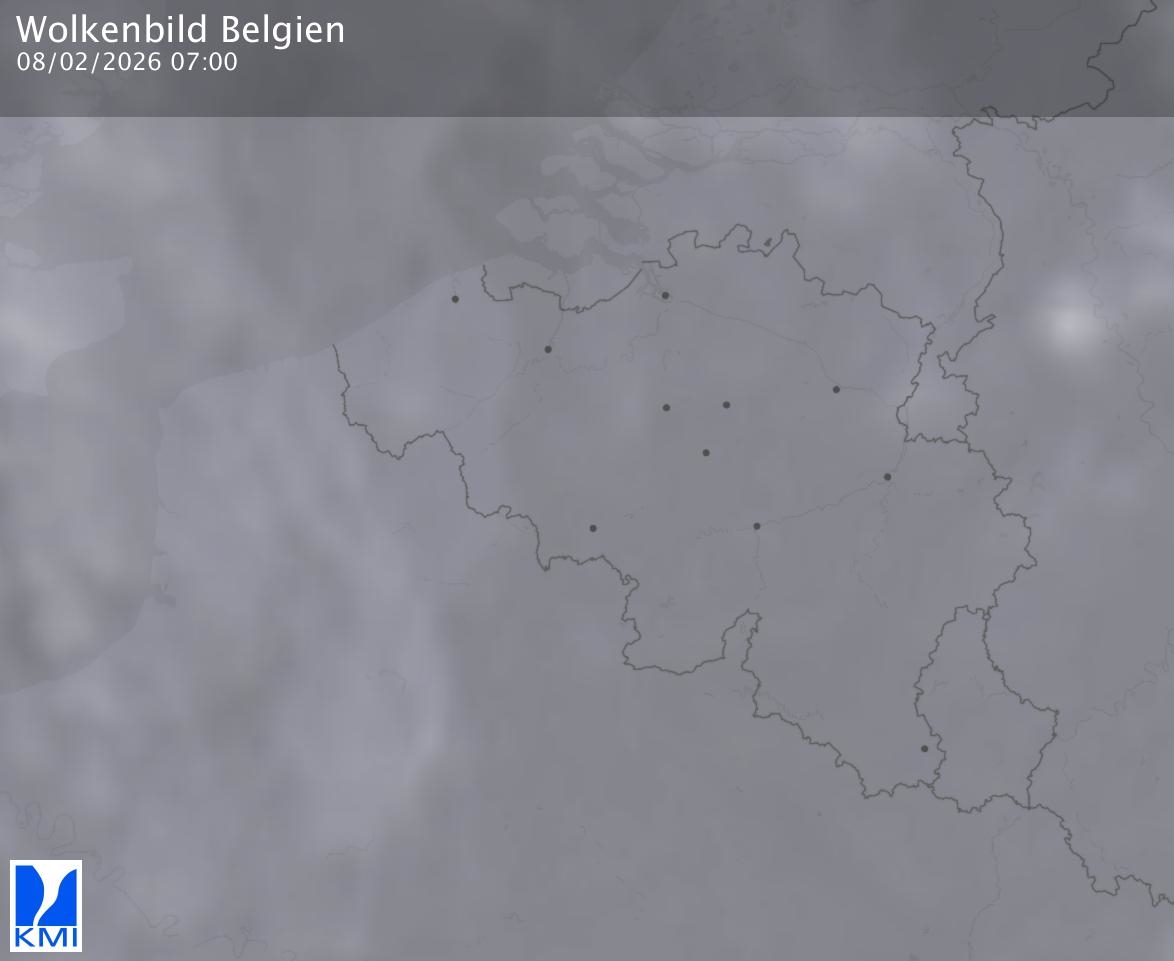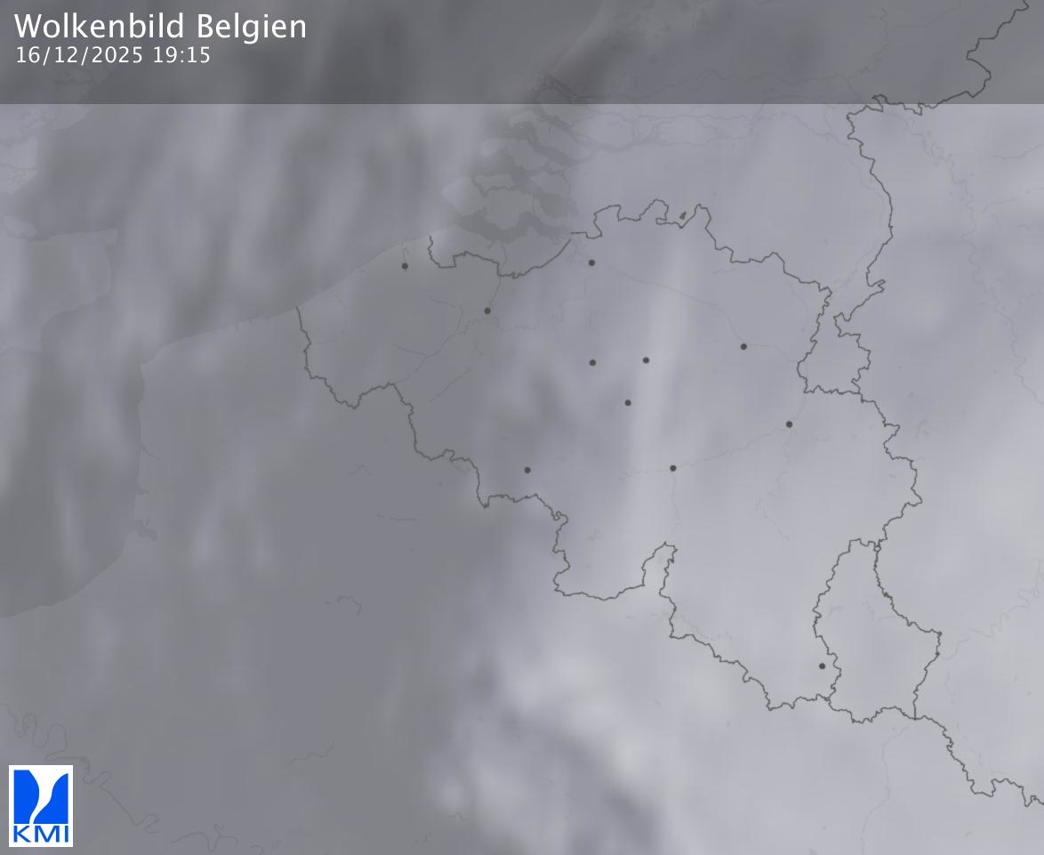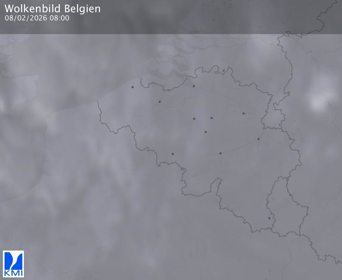 Das Wolkenbild Belgiens ist eine Kombination der sichtbaren und Infrarotkanäle des Satelliten.