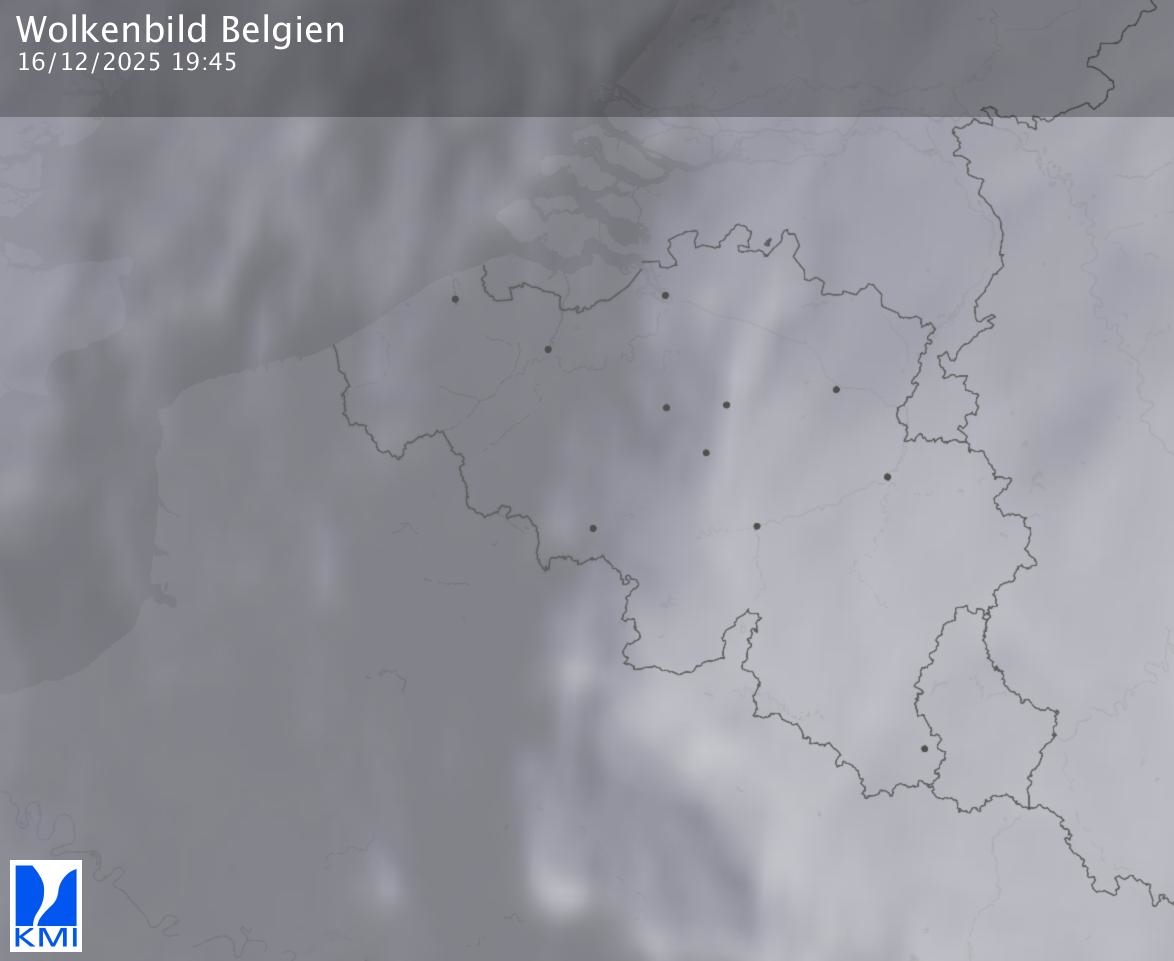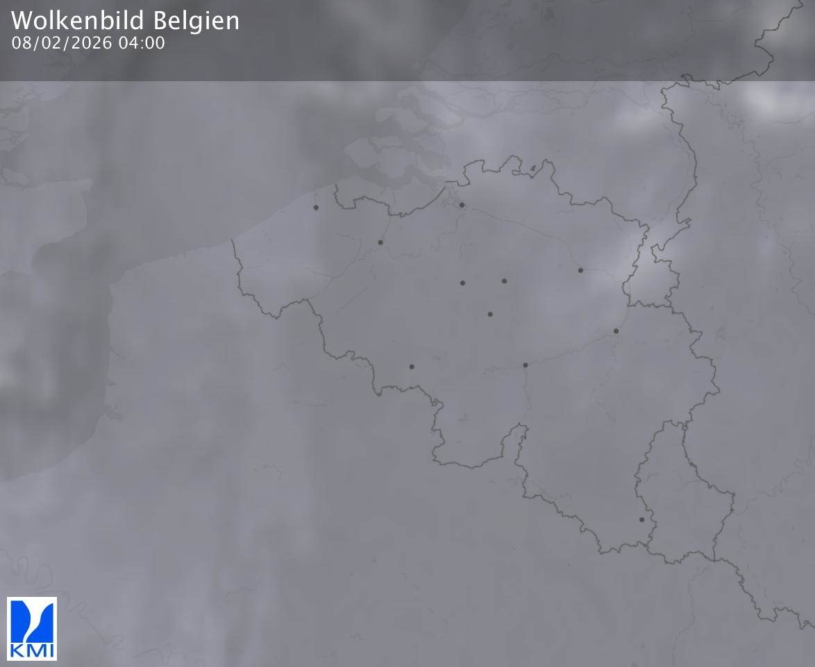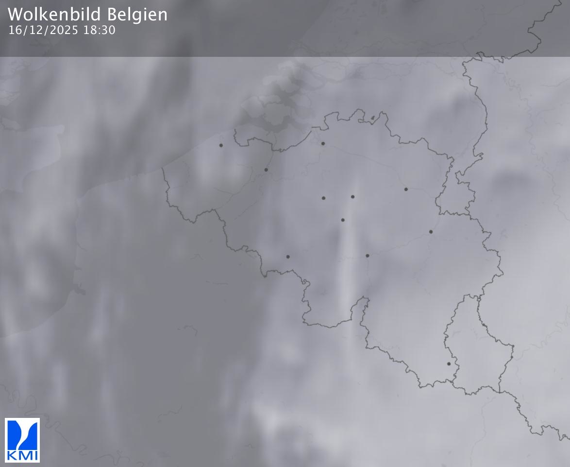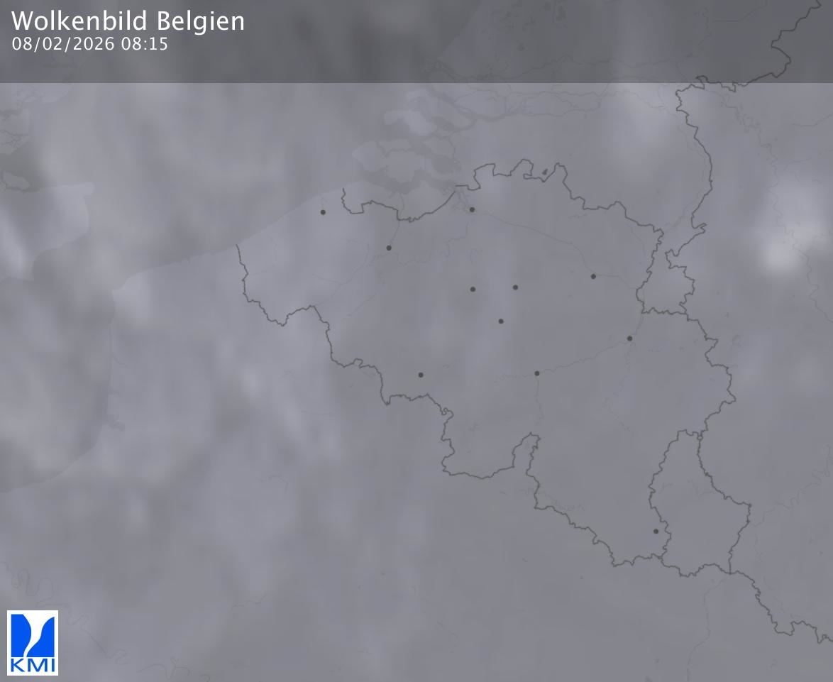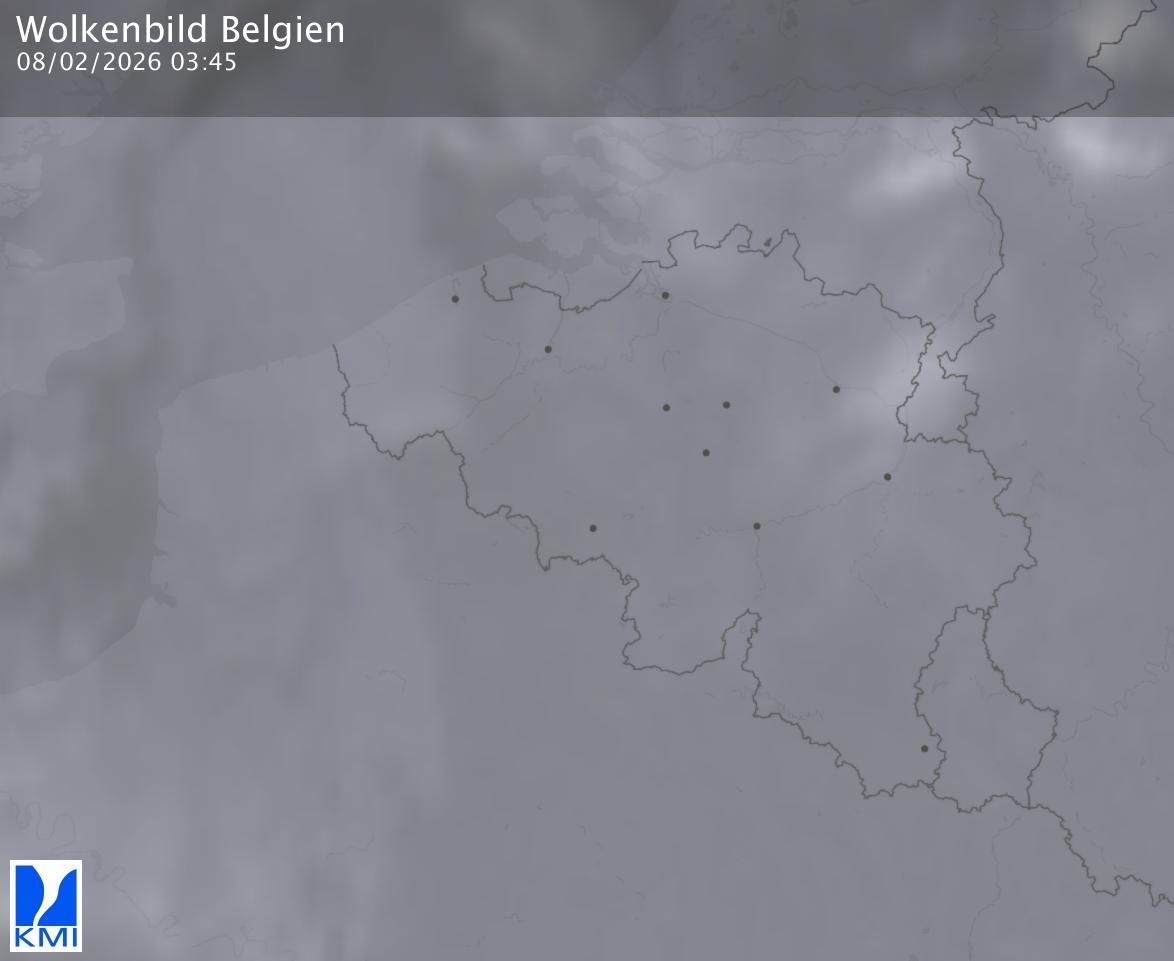 Das Wolkenbild Belgiens ist eine Kombination der sichtbaren und Infrarotkanäle des Satelliten.