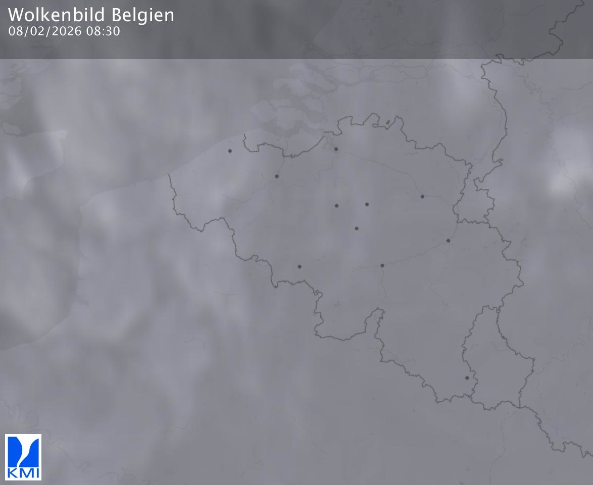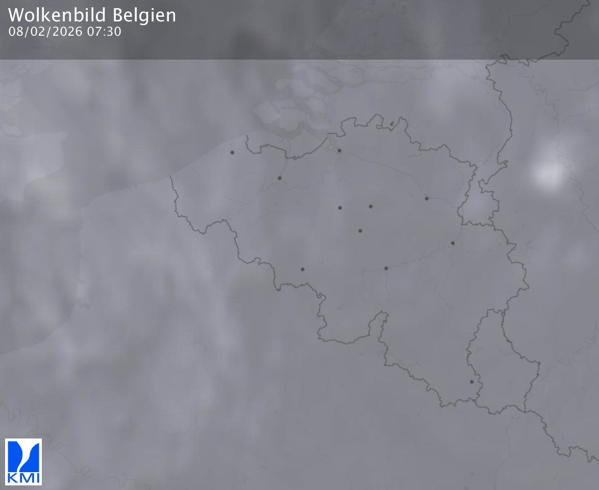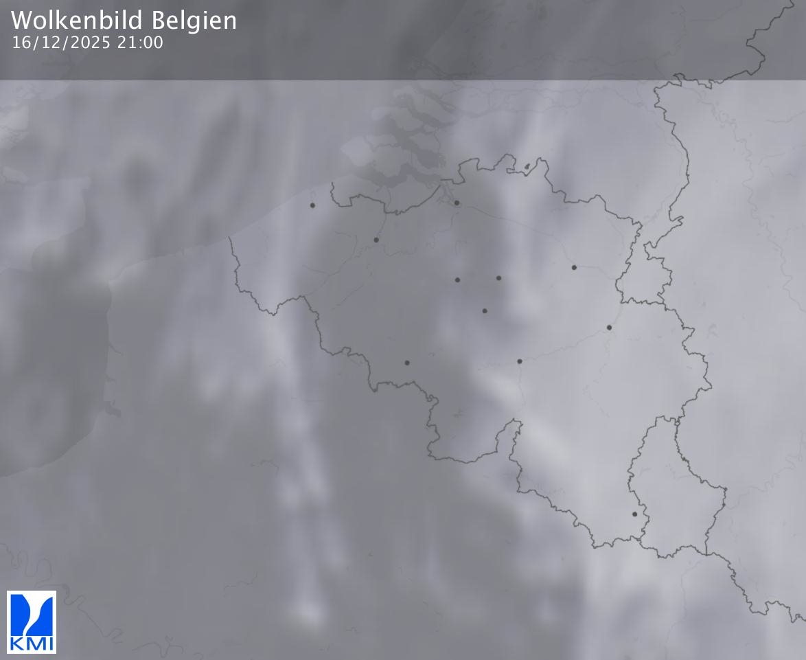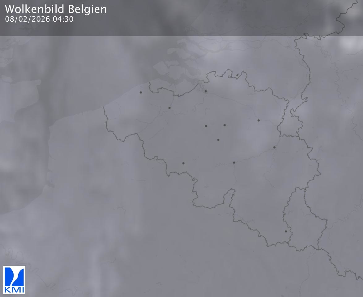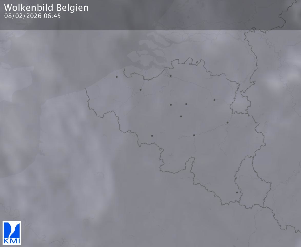 Das Wolkenbild Belgiens ist eine Kombination der sichtbaren und Infrarotkanäle des Satelliten.
