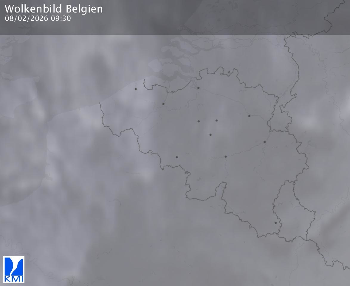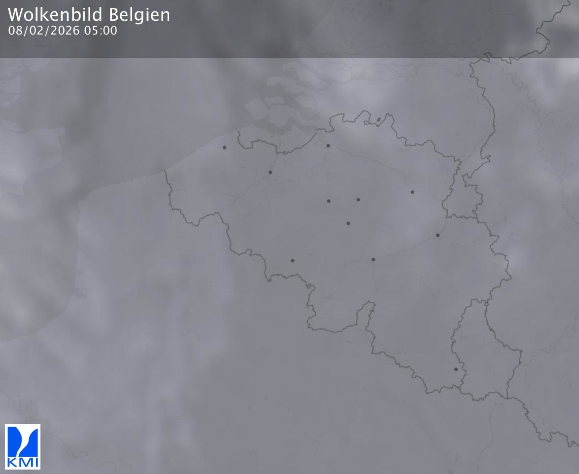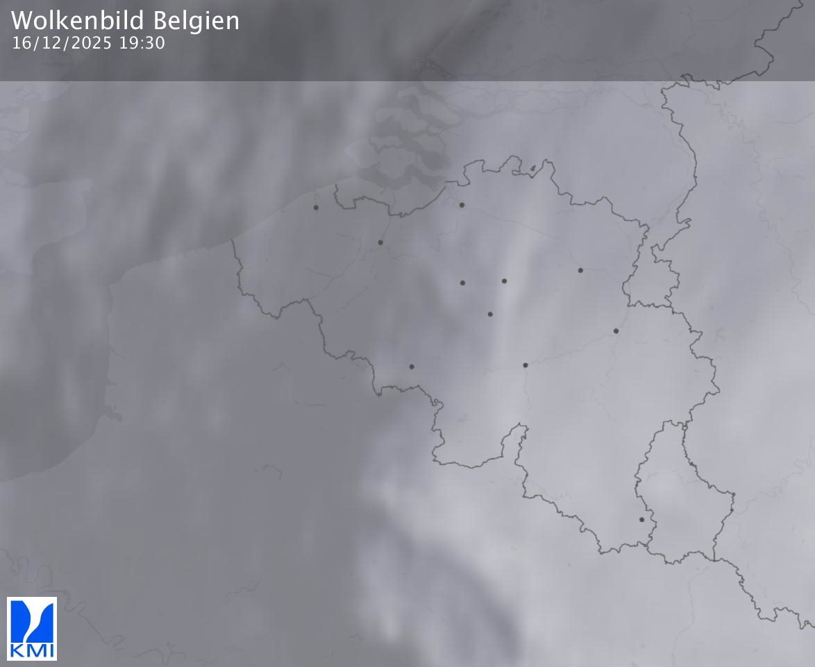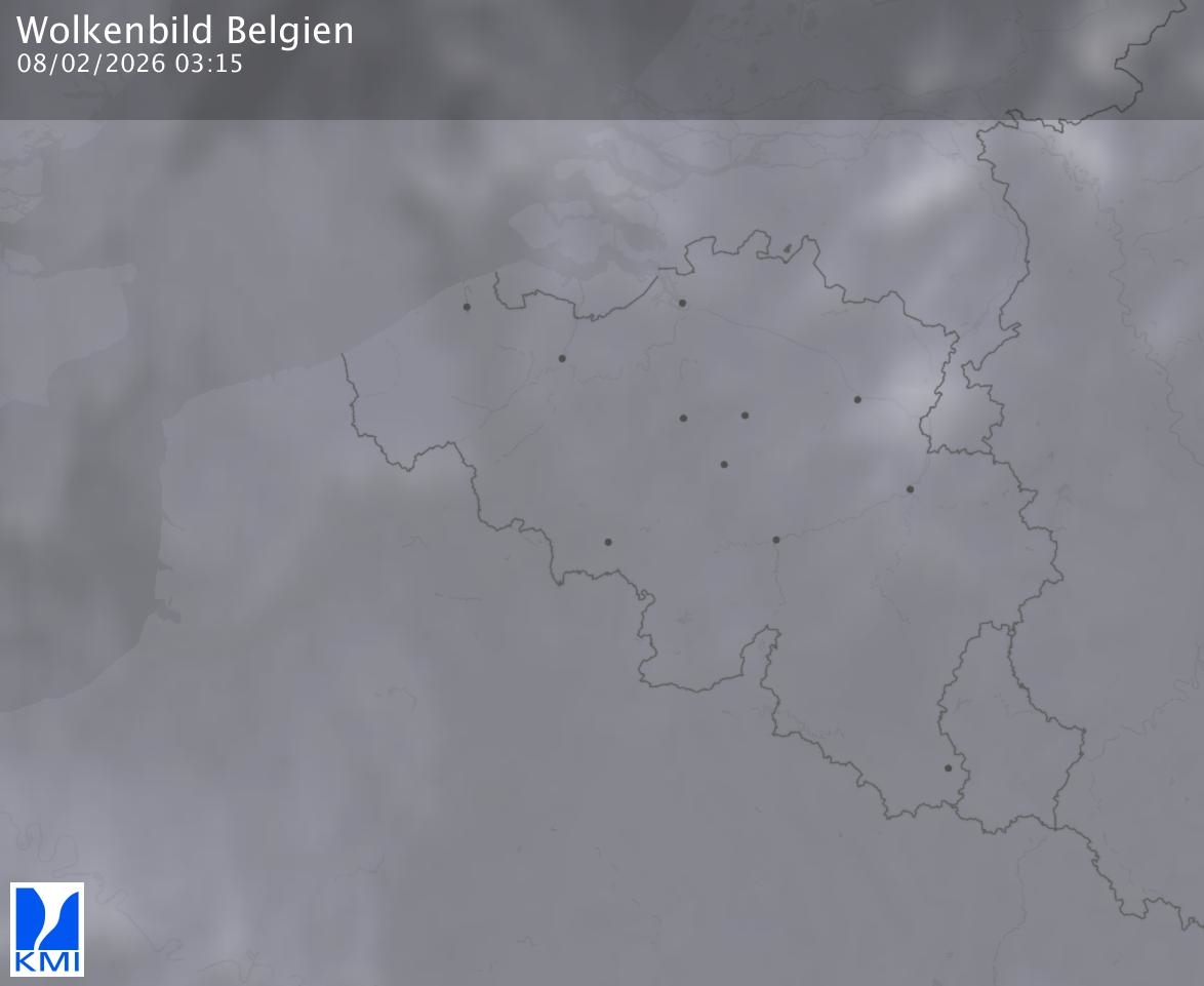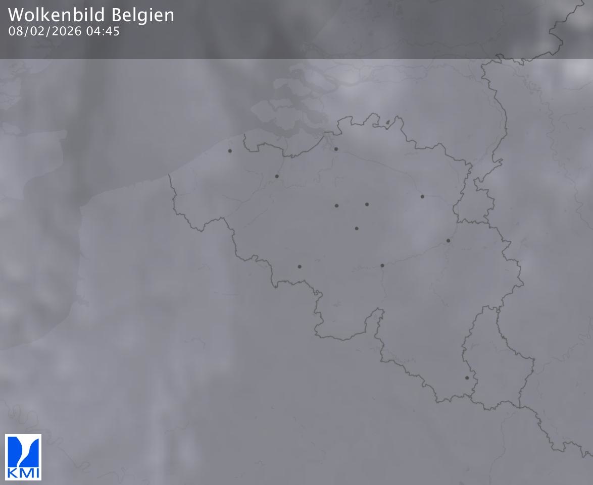 Das Wolkenbild Belgiens ist eine Kombination der sichtbaren und Infrarotkanäle des Satelliten.