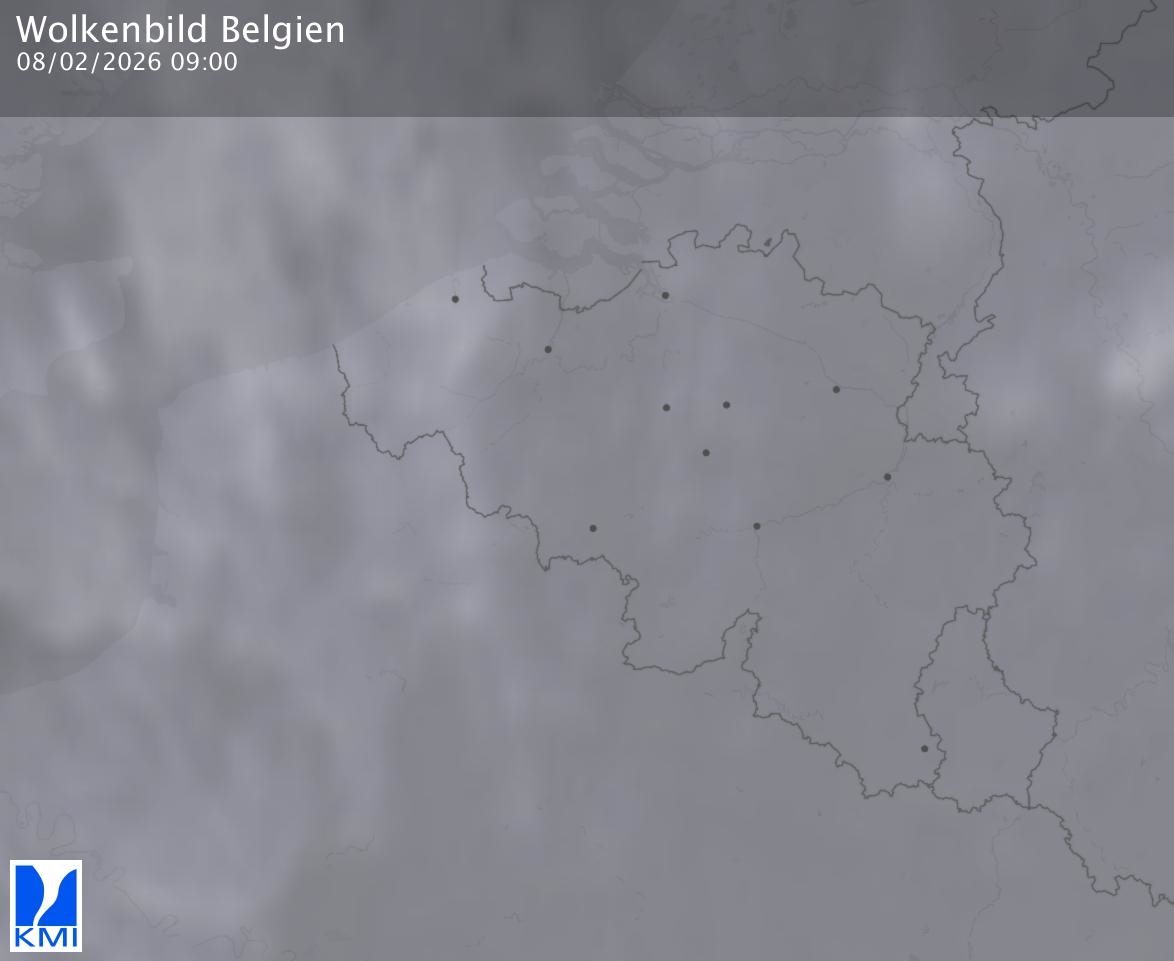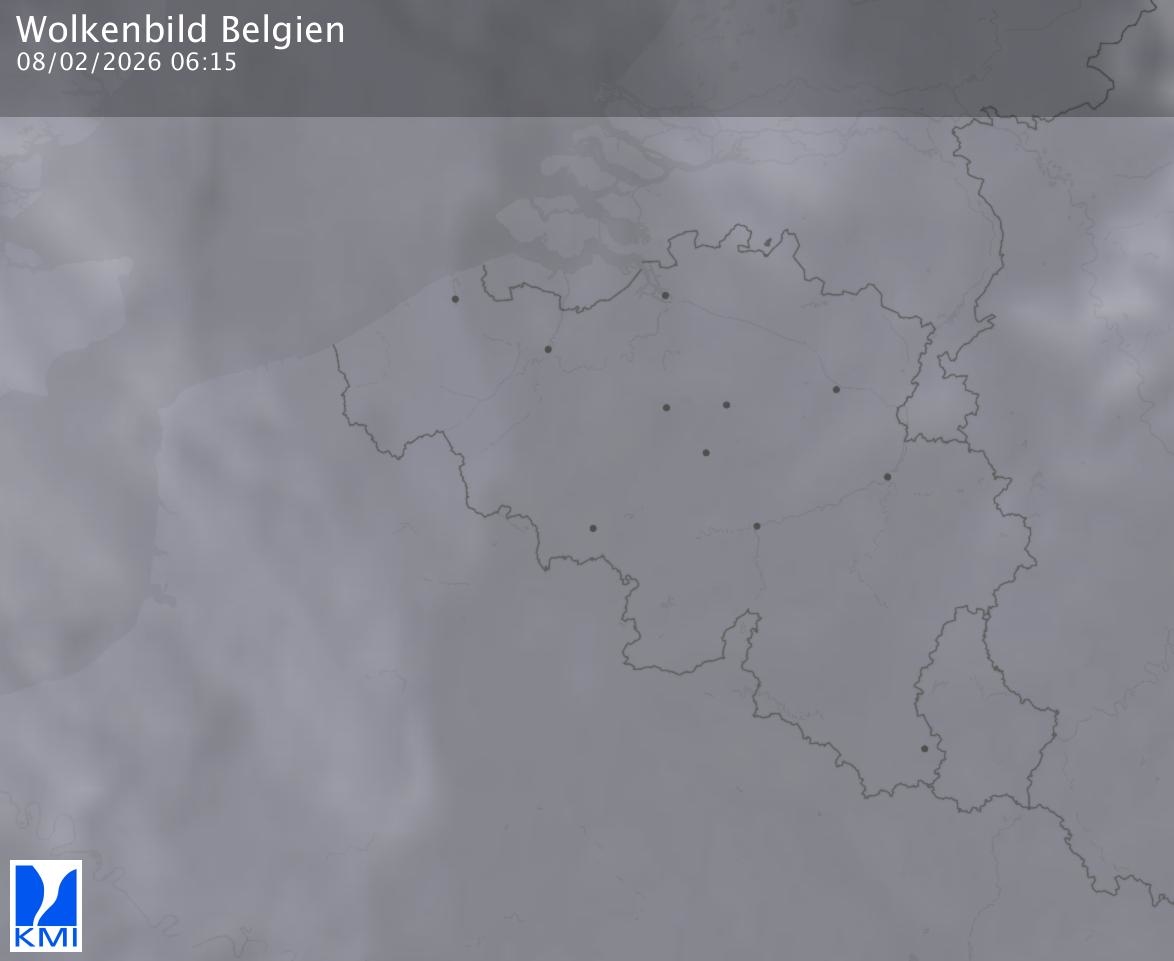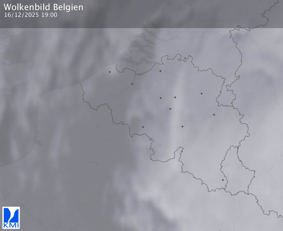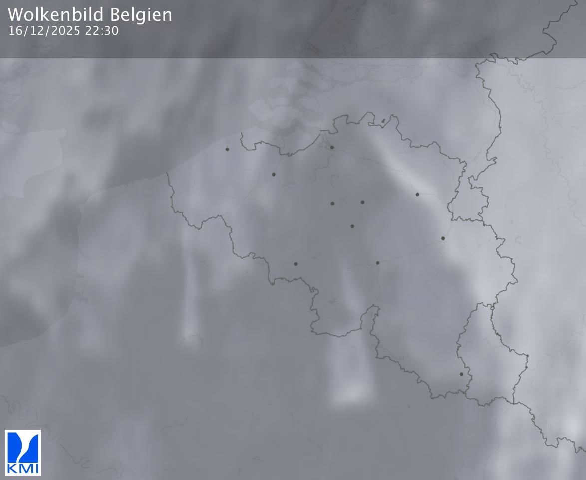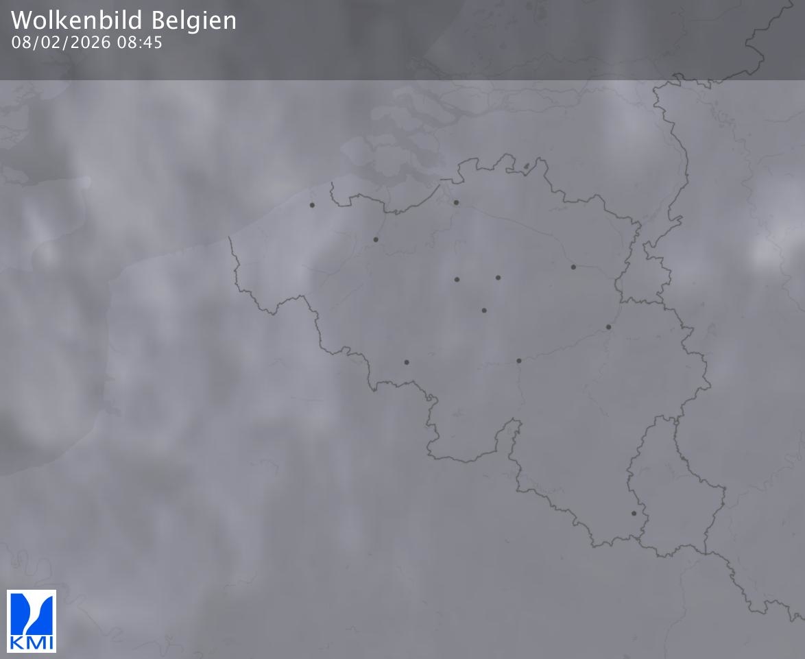 Das Wolkenbild Belgiens ist eine Kombination der sichtbaren und Infrarotkanäle des Satelliten.