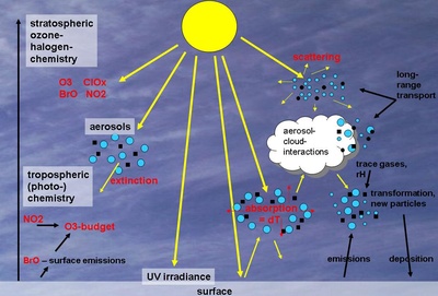 Ozone, Uv and aerosol studies and modelling of the atmospheric composition