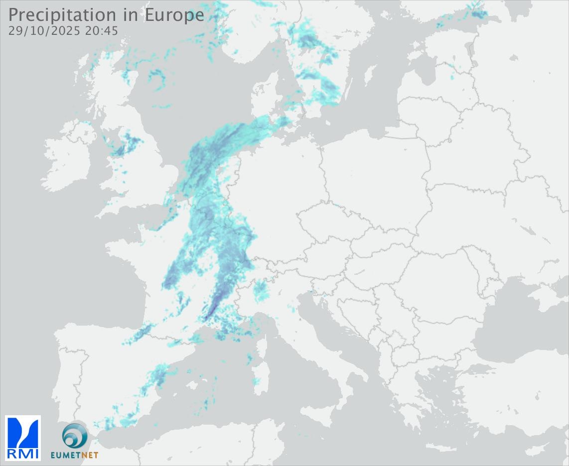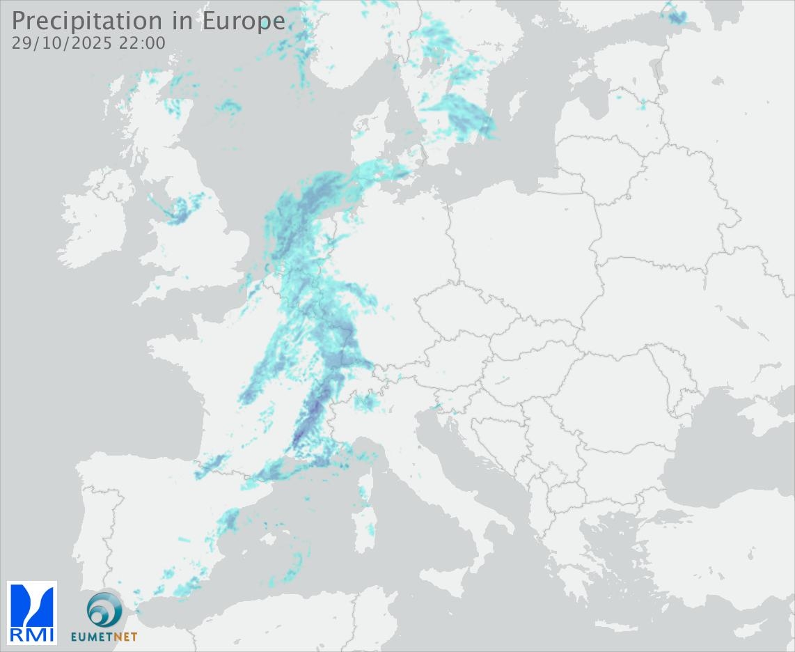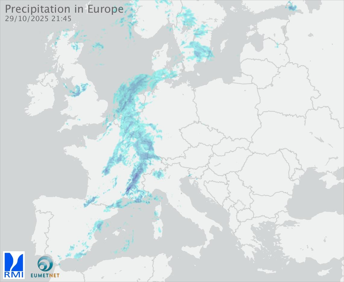 This animation shows the fallen precipitation observed by the radars of the European members of the OPERA program of Eumetnet.