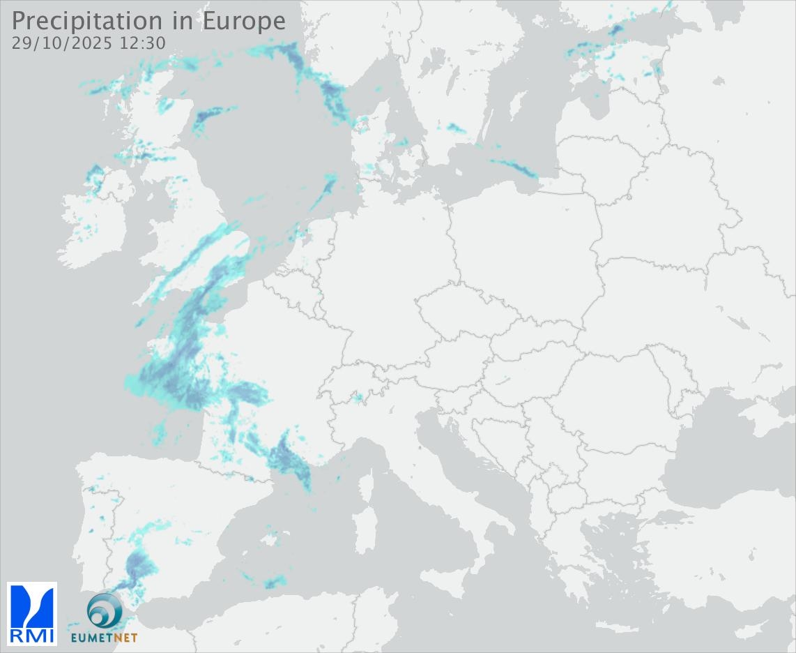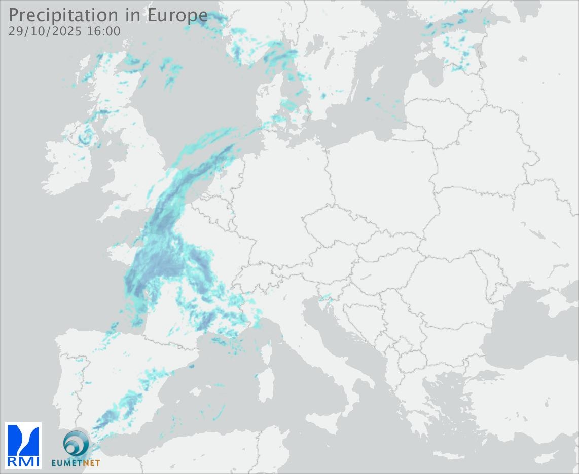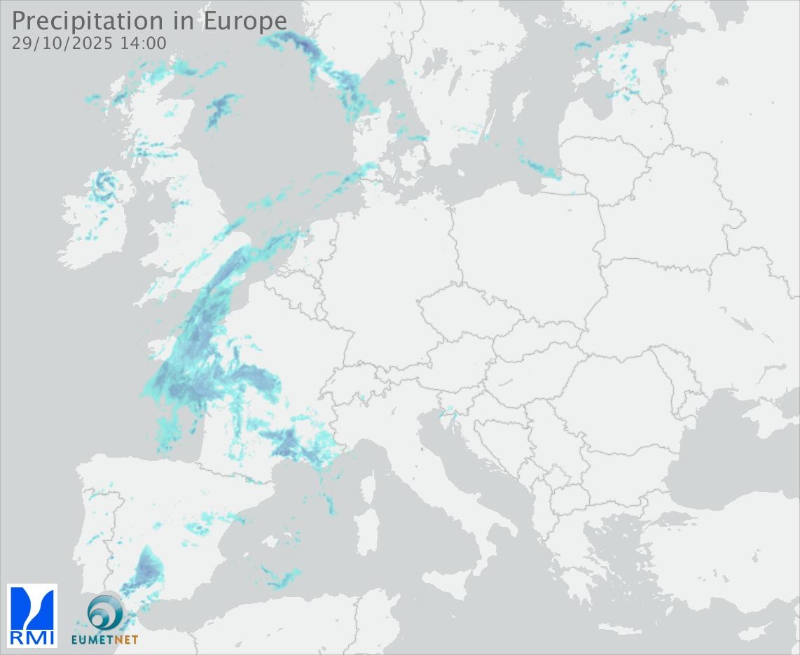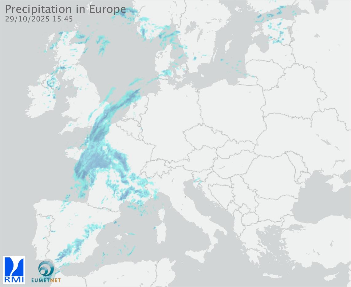 This animation shows the fallen precipitation observed by the radars of the European members of the OPERA program of Eumetnet.