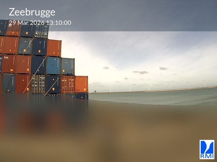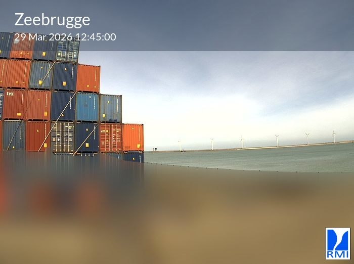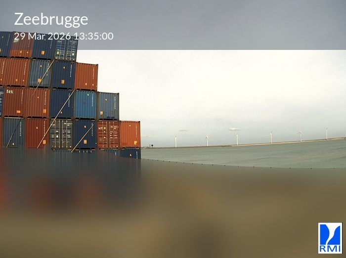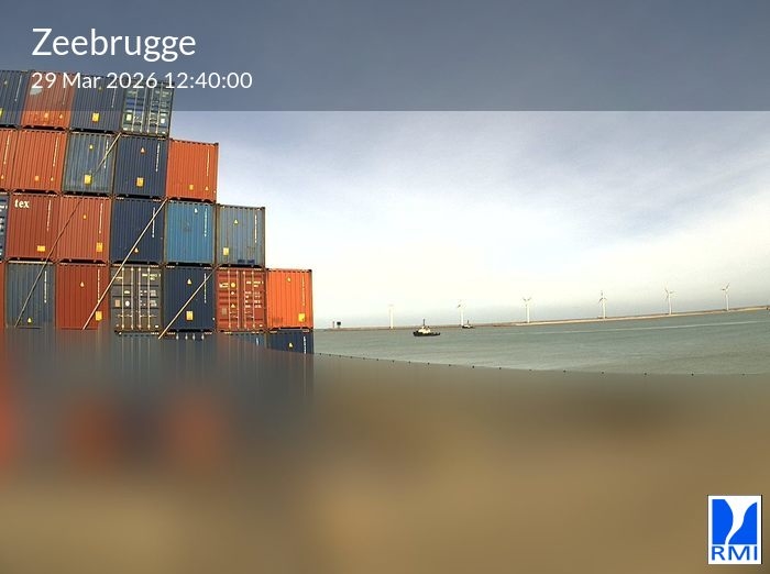 The webcam is situated on the Leopold II dam in the port of Zeebrugge and it is oriented to the North to avoid direct sunlight at noon.
