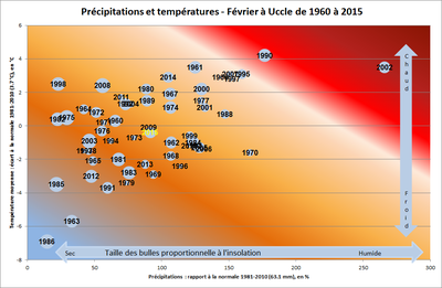 Remarque : à partir du bilan climatologique mensuel de janvier 2011, les normales et les valeurs record (+ et -) données dans le tableau ci-dessous sont calculées pour tous les paramètres sur la période 1981–2010. Cette période de 30 ans est la nouvelle période de référence choisie pour le calcul des normales (moyennes sur la période) à Uccle.