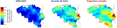 Le 14 juillet 2021, 100 mm de pluie sont tombés en 24 heures en moyenne sur le bassin versant de la Vesdre. Un tel événement exceptionnel sur le climat présent deviendrait récurrent (tous les 20 ans) dans un monde à +3°C où des pluies plus extrêmes pourraient même être observées. Enfin, comme le rappellent les auteurs, la nature ne suit pas toujours les probabilités et une répétition de cet épisode reste tout à fait possible à court terme.