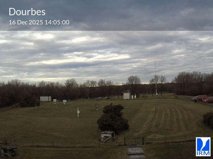 La webcam est installée au sommet du bâtimemt principal du Centre de Physique du Globe de l'IRM à Dourbes (Province de Namur). Elle est dirigée vers le nord afin d'éviter les rayons du soleil à midi.