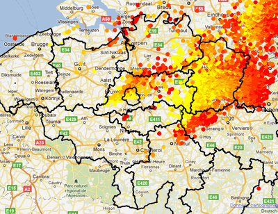 Uit de gegevens van BELLS wordt een bliksemkaart gemaakt waarop de locatie van elke ontlading wordt voorgesteld in functie van de tijd. Door middel van een kleurcode wordt het tijdsinterval aangegeven.