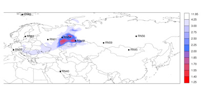 “Het resultaat is te zien in onderstaande figuur en toont de afwijking tussen de metingen en de analyse voor elke mogelijke locatie op het noordelijk halfrond; een lage waarde betekent een goede match tussen model en metingen, en dus een waarschijnlijke bronlocatie”, zegt Pieter De Meutter, die de berekeningen uitvoerde. “Het ruthenium-106, een splijtingsproduct, is waarschijnlijk afkomstig uit een gebied gelegen in Rusland waar zich verschillende nucleaire installaties bevinden. Het kan echter niet vrijgekomen zijn bij een reactorincident. In dat geval zouden ook andere splijtingsproducten, zoals edelgassen en jodium, ongeveer gelijktijdig moeten gemeten zijn."