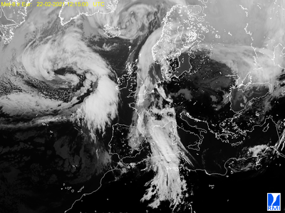 Anderzijds vertonen de satellietbeelden vandaag een korrelige structuur van hoge wolken, die kenmerkend is voor de aanwezigheid van stof.