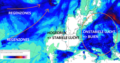 Ook deze laatste week van de maand mei blijft het nog overwegend droog. Een nieuw hogedrukgebied nestelt zich, wederom, in onze contreien en verplaatst zich later naar Scandinavië. Het houdt depressies met regenzones ten westen en noorden van ons, en de onstabiele lucht met buien ten zuidoosten van ons. De kans op neerslag wordt pas groter in het begin van juni.