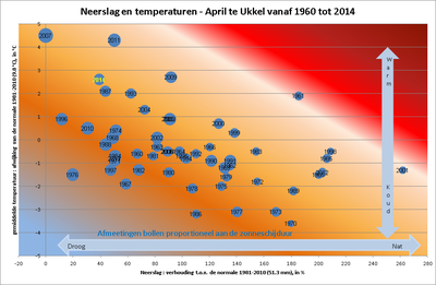 De tweede maand van de meteorologische lente werd in Ukkel gekenmerkt door zeer abnormaal hoge waarden van de gemiddelde temperatuur, een zeer abnormaal laag neerslagtotaal, een abnormaal lage gemiddelde windsnelheid en een normale waarde van de zonneschijnduur.