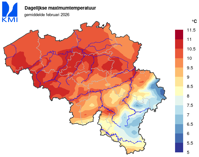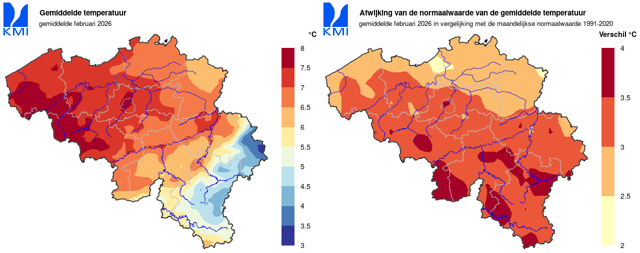 Februari 2026 : Zeer warme en natte maand