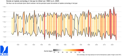 Fig.3: Eerste en laatste zomerdag in het jaar te Ukkel van 1892 t.e.m. 2025