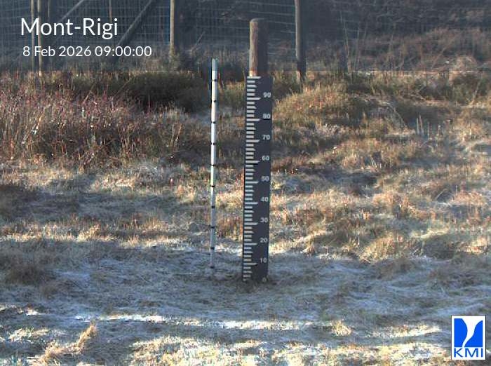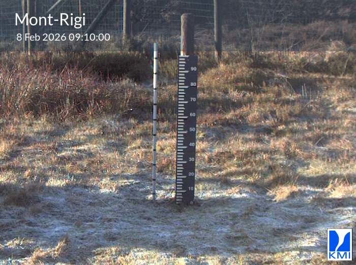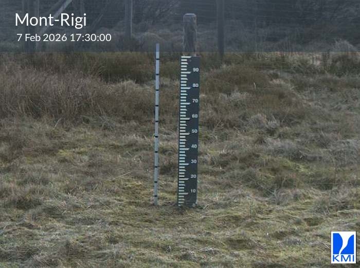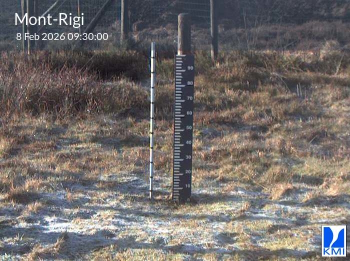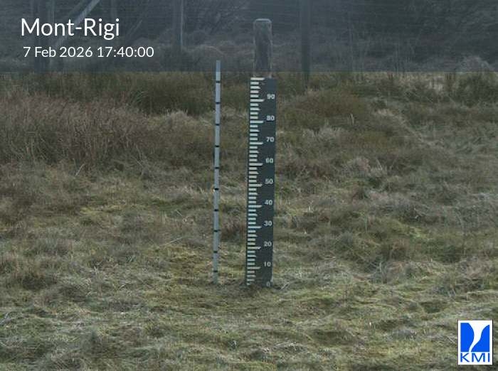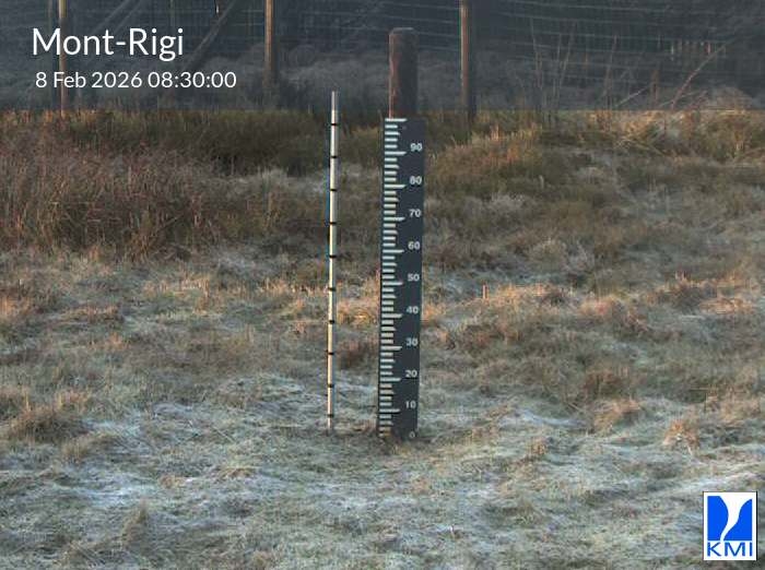 De meetlat op het beeld laat toe om de actuele sneeuwhoogte (in cm) in te schatten.