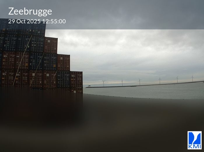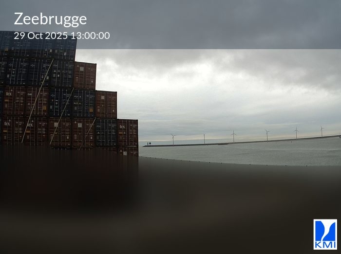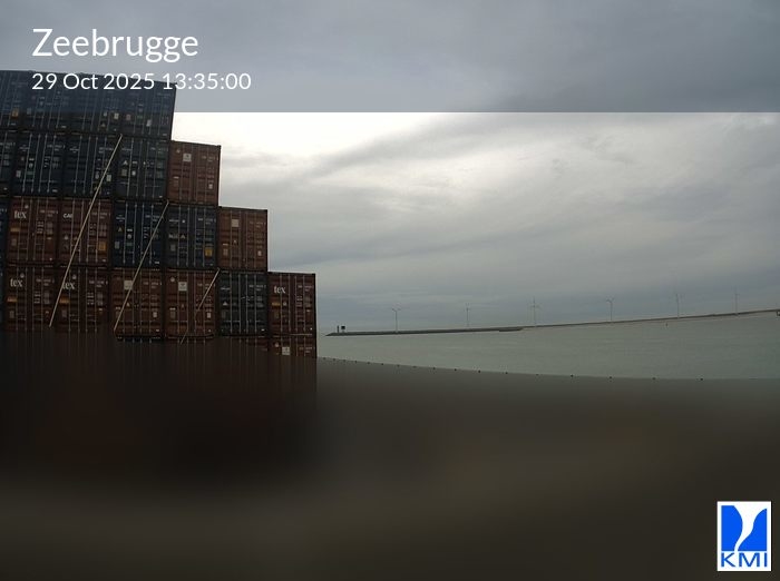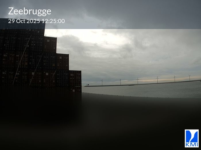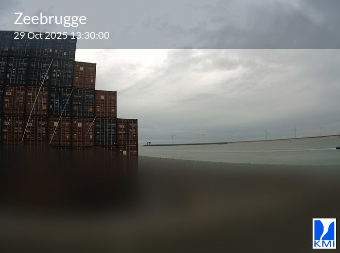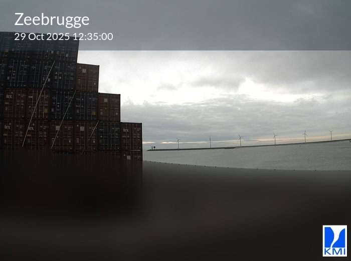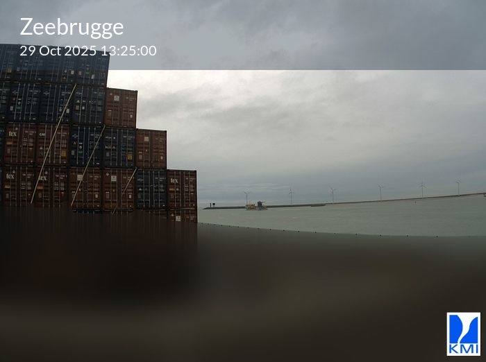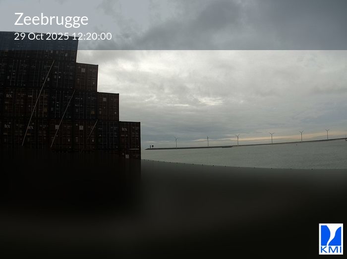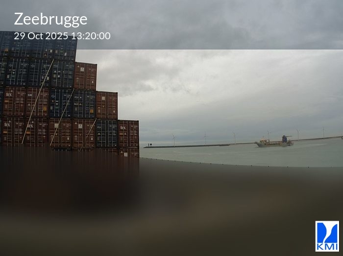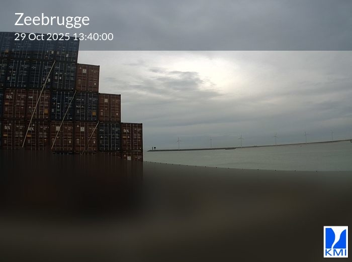 De webcam bevindt zich op de Leopold II-Dam in de haven van Zeebrugge aan de Belgische Kust en is naar het noorden gericht om het rechtstreekse zonlicht tijdens het middaguur te vermijden.