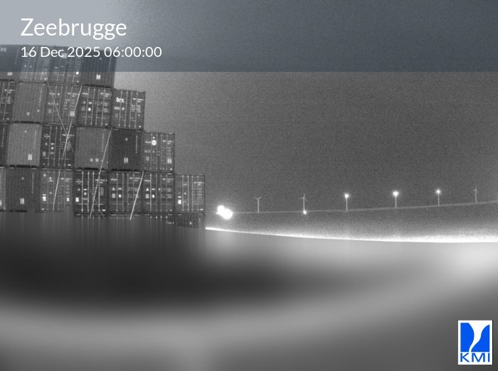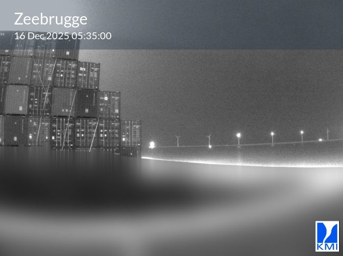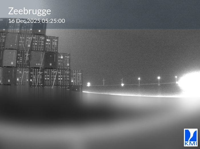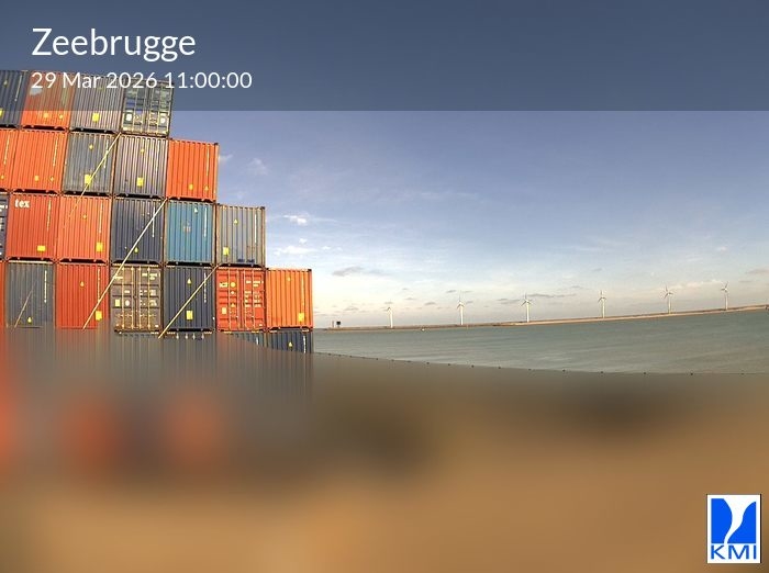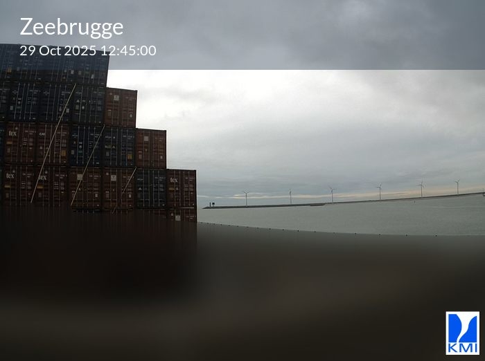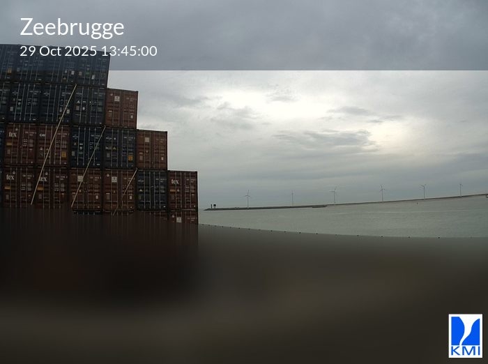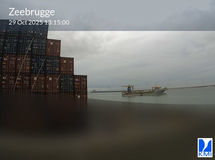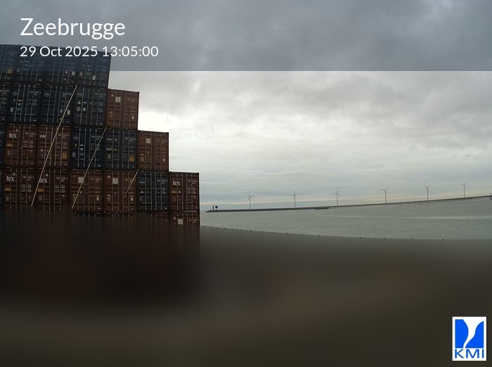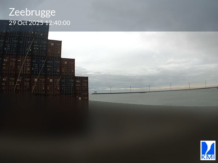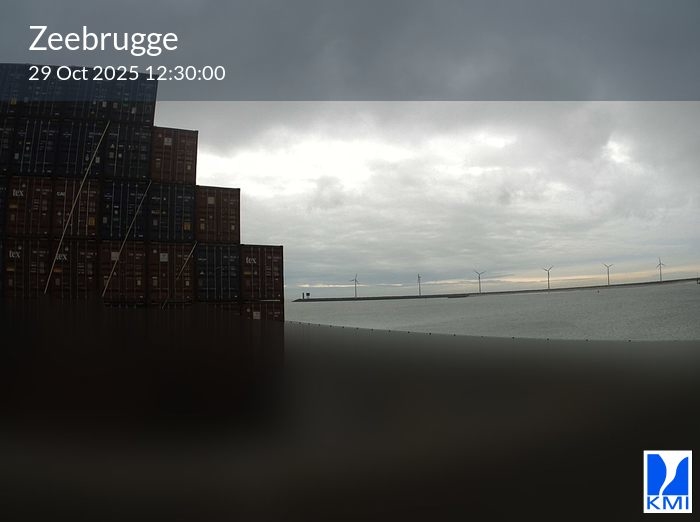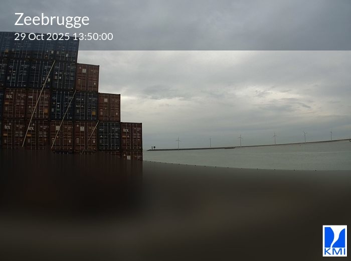 De webcam bevindt zich op de Leopold II-Dam in de haven van Zeebrugge aan de Belgische Kust en is naar het noorden gericht om het rechtstreekse zonlicht tijdens het middaguur te vermijden.