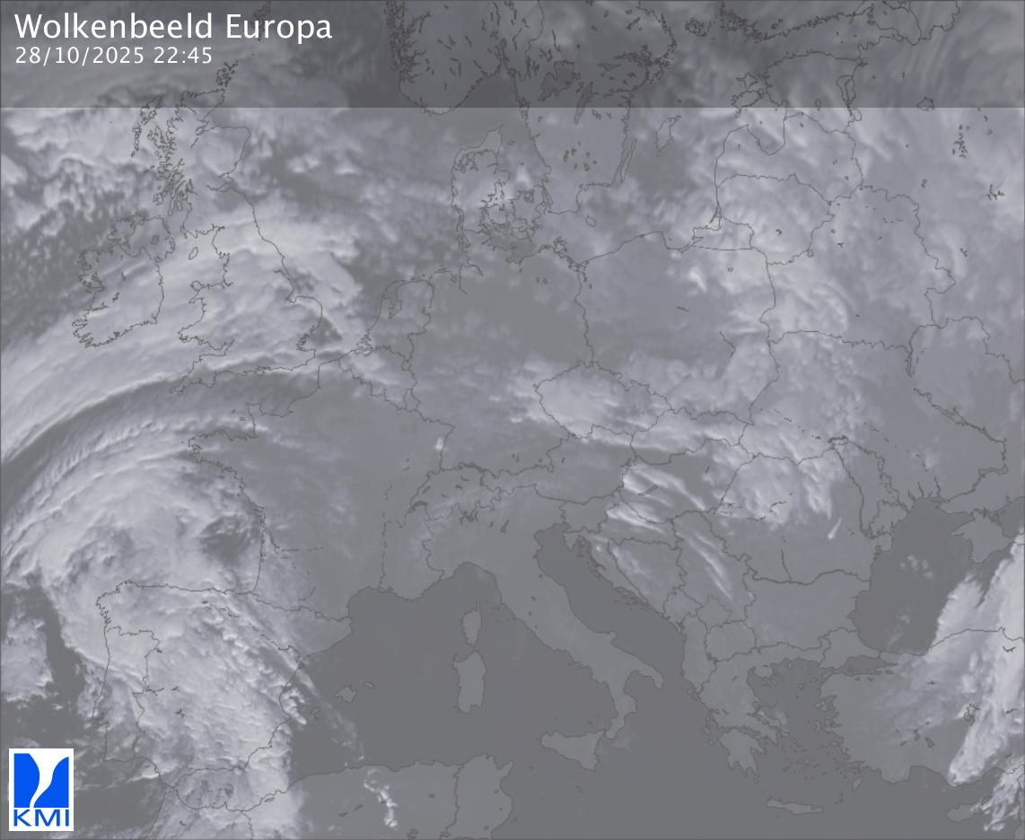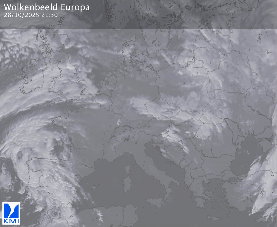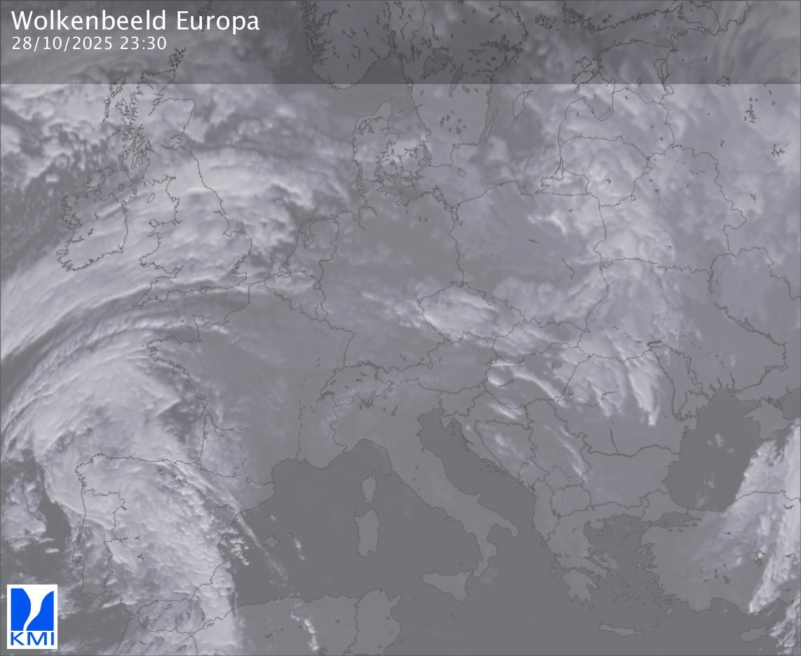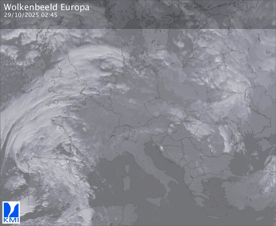 Wolkenbeelden van Europa: een combinatie uit het zichtbare (dag) en infrarode (nacht) spectrum.