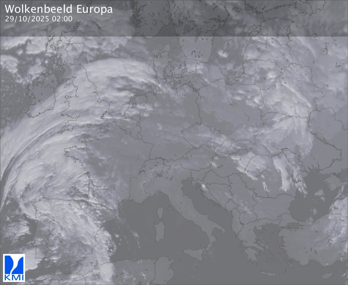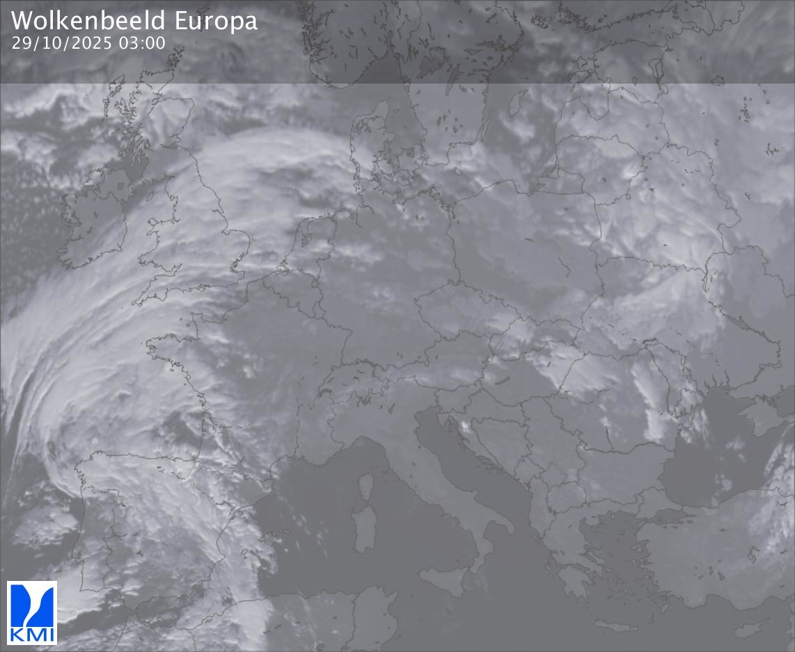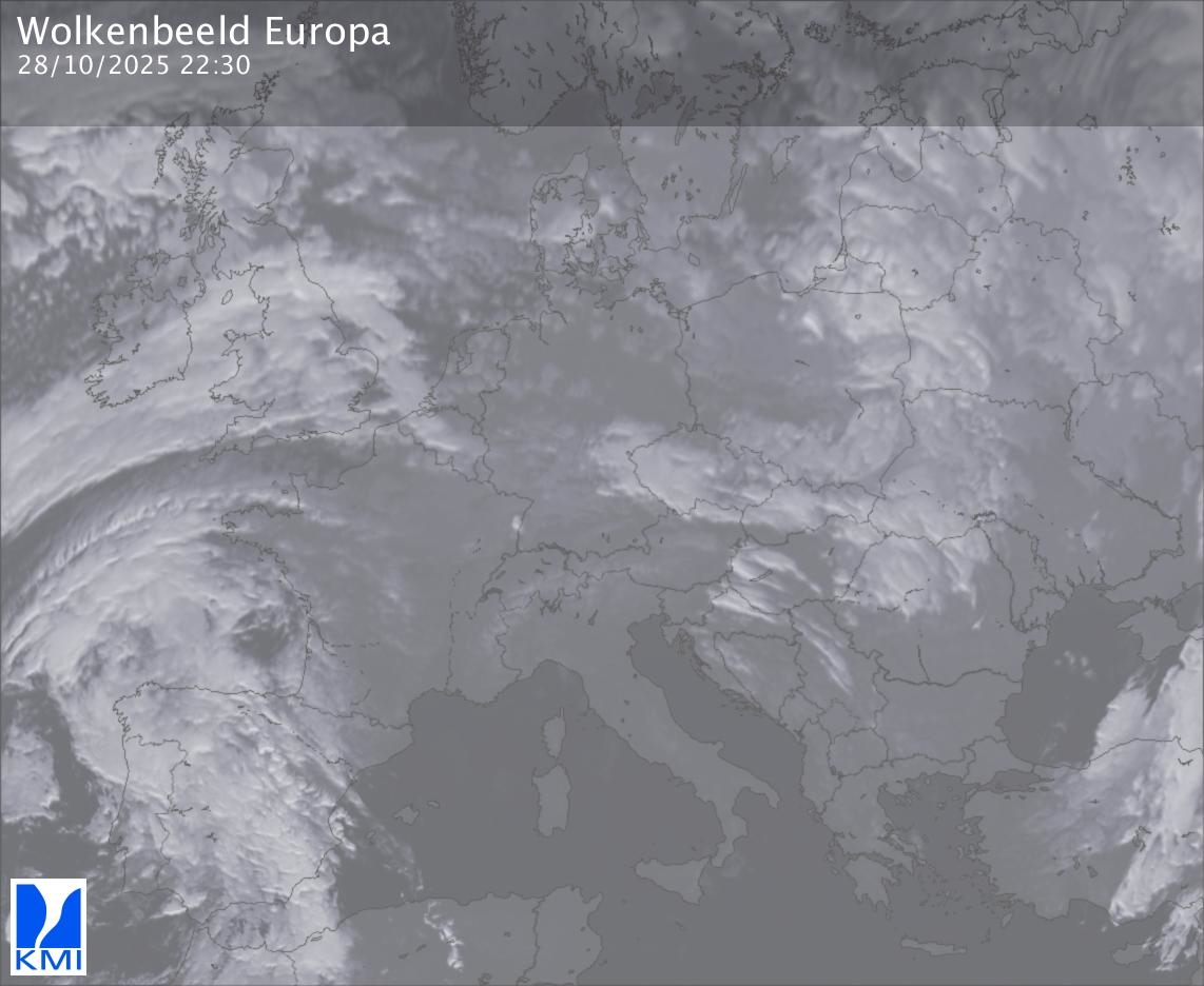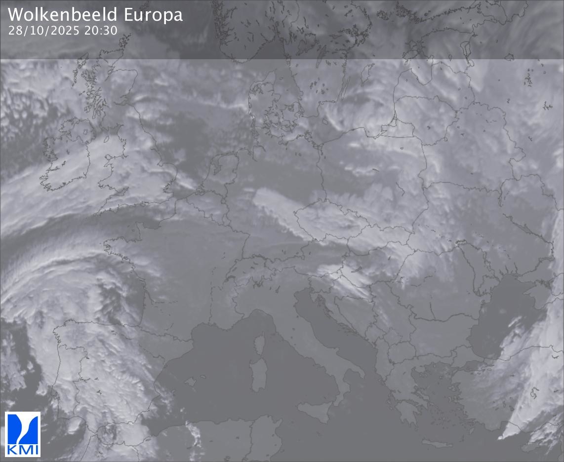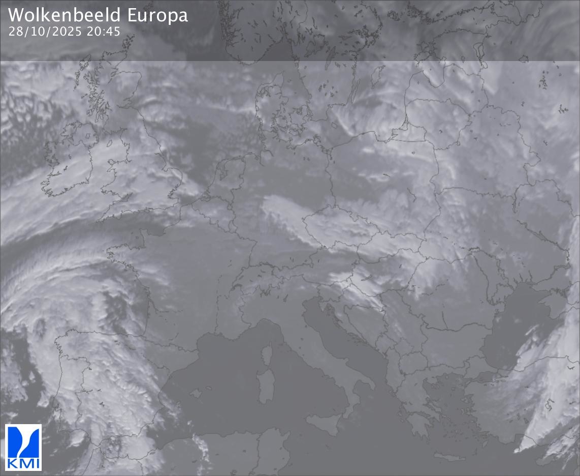 Wolkenbeelden van Europa: een combinatie uit het zichtbare (dag) en infrarode (nacht) spectrum.