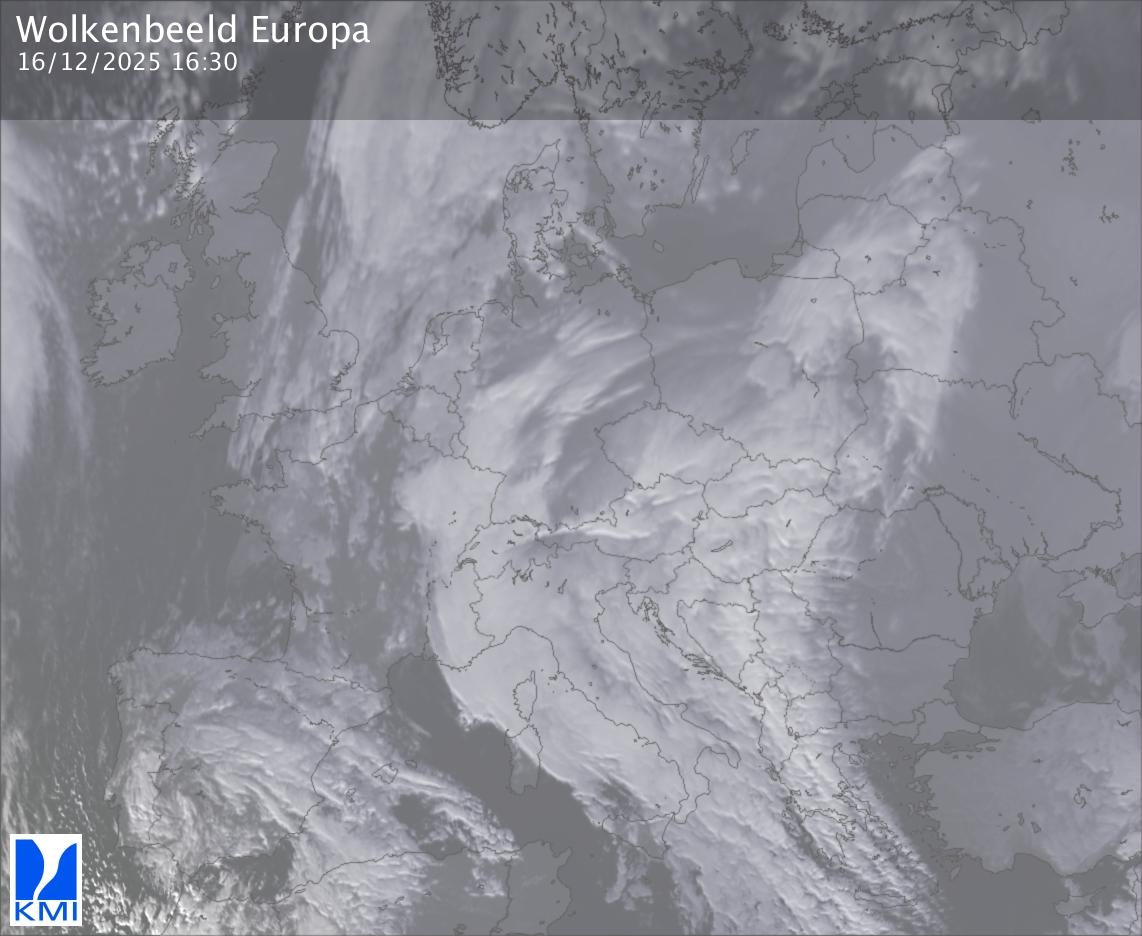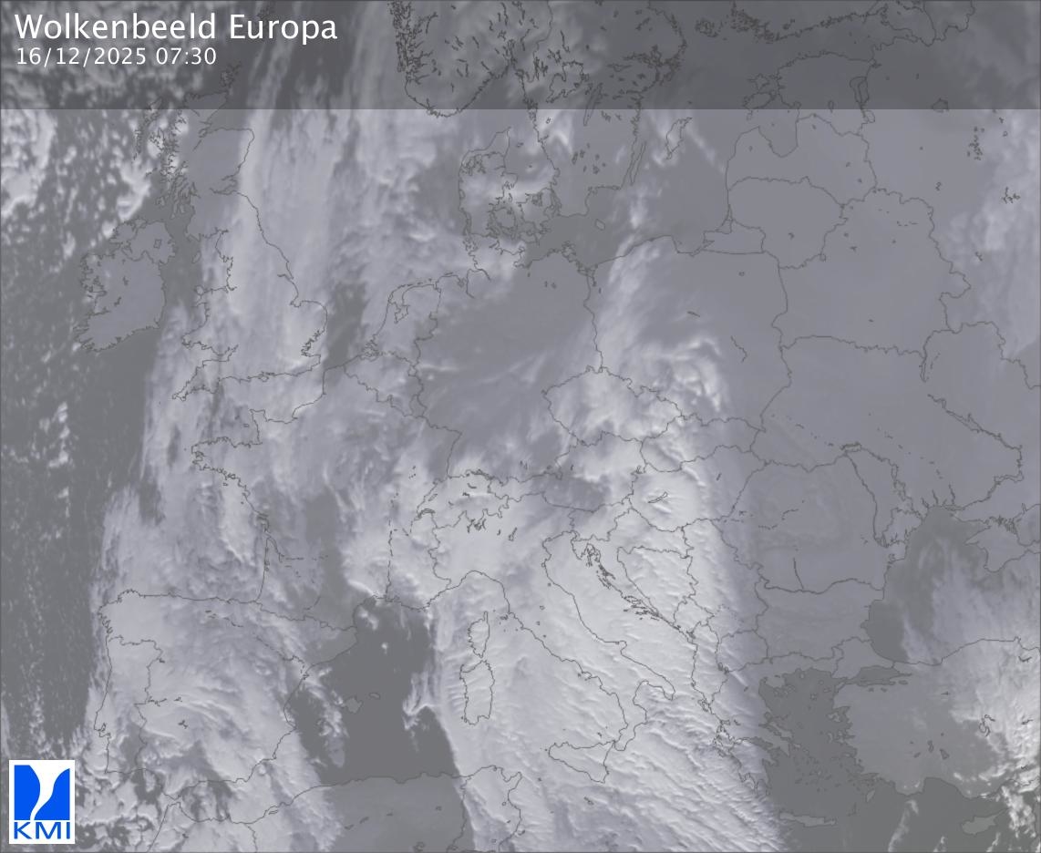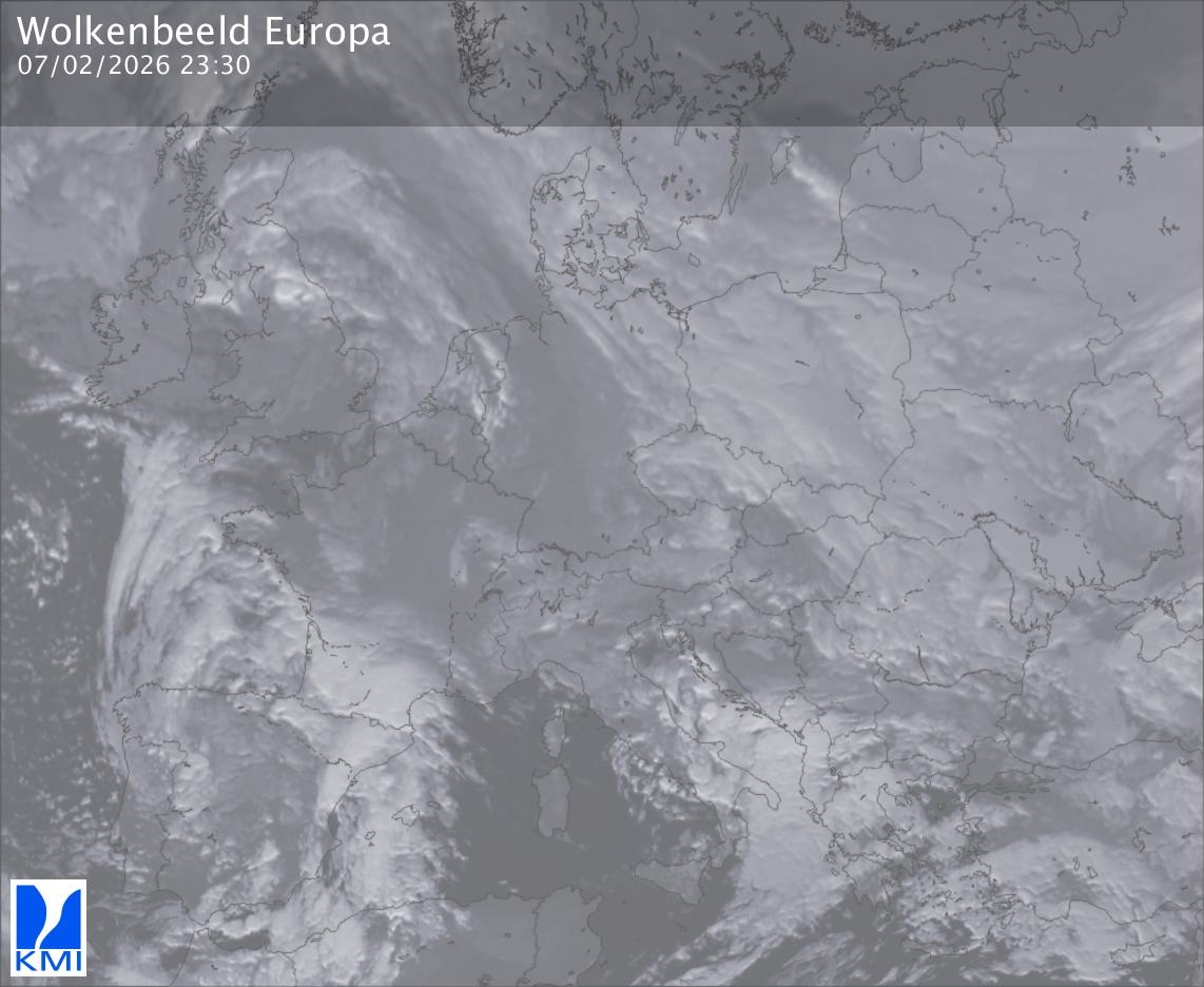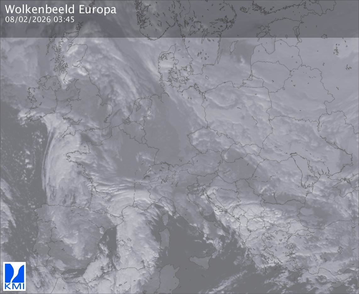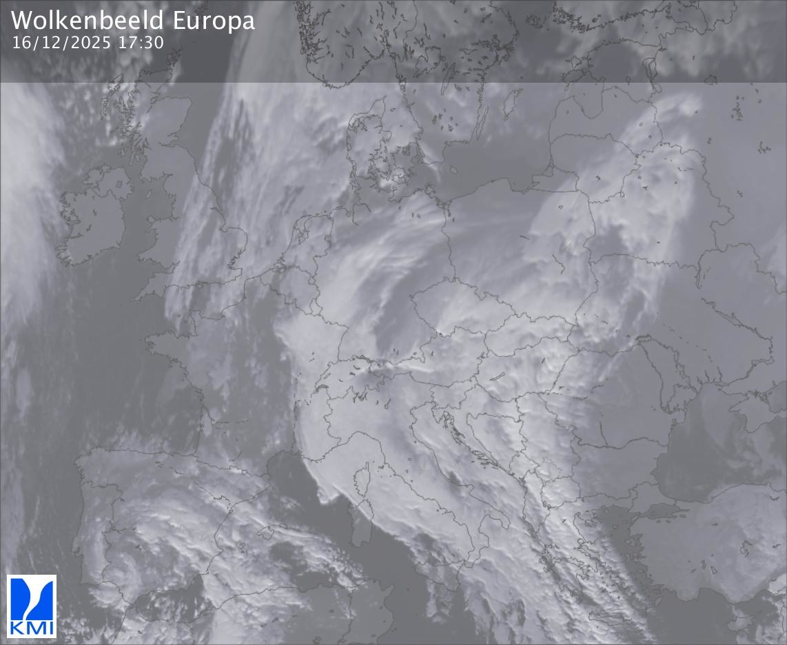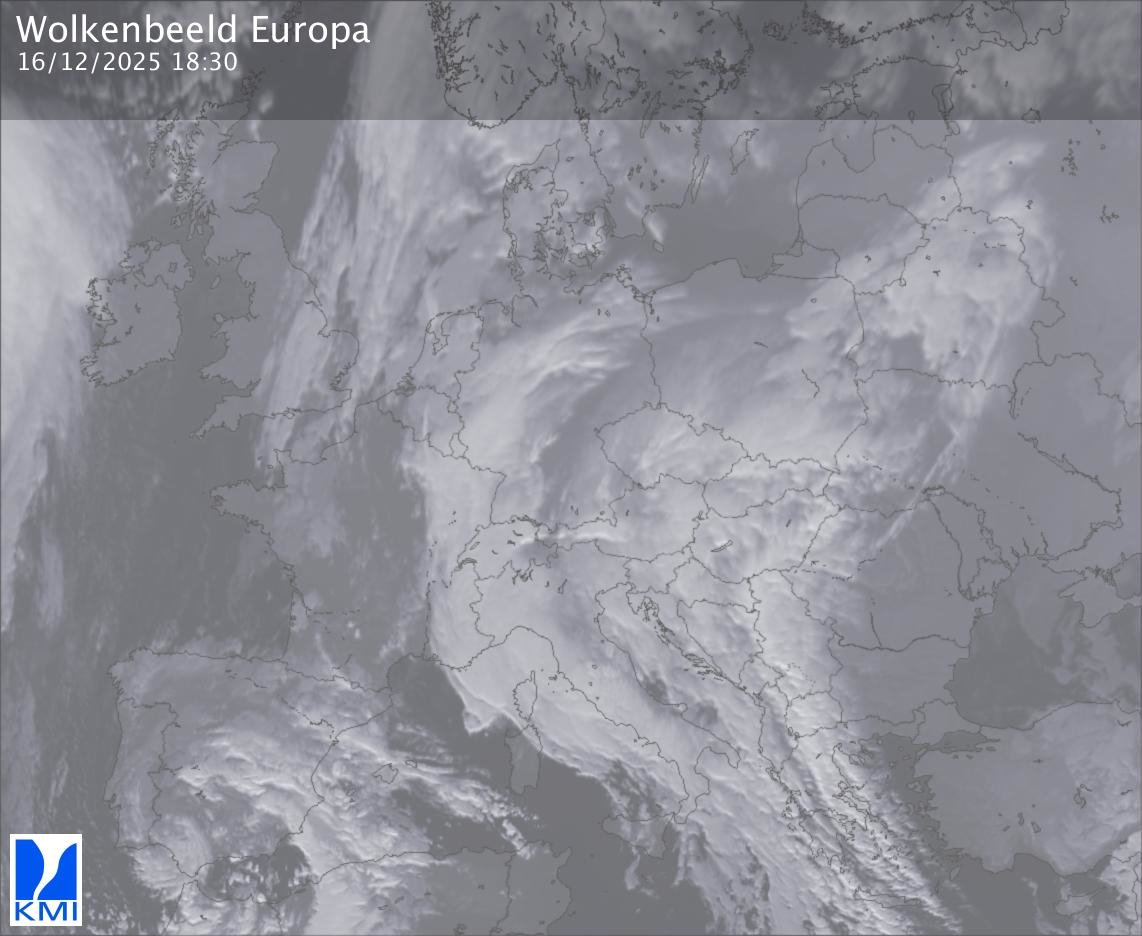 Wolkenbeelden van Europa: een combinatie uit het zichtbare (dag) en infrarode (nacht) spectrum.