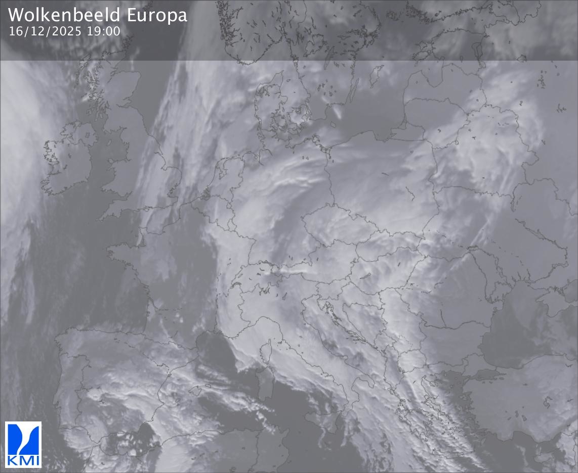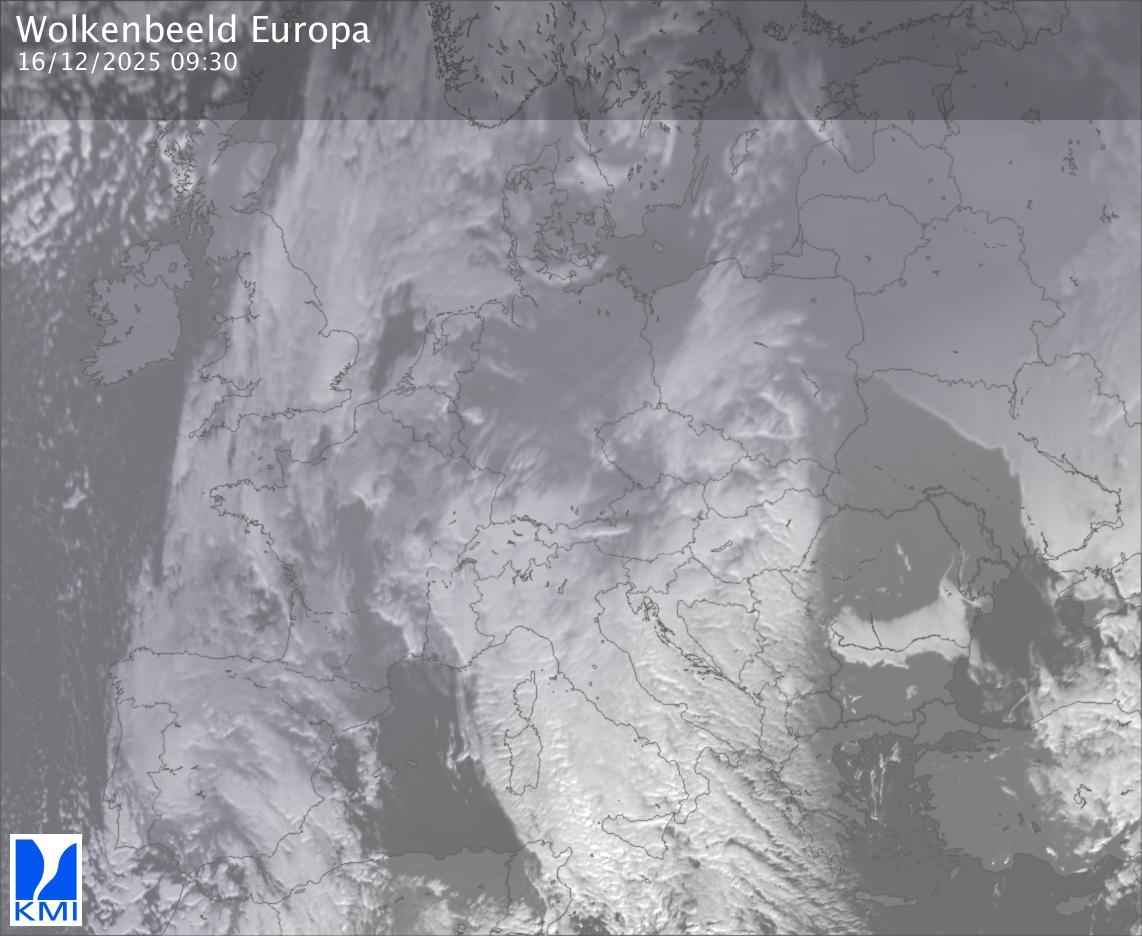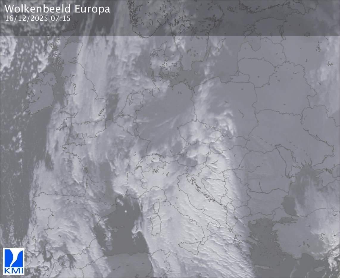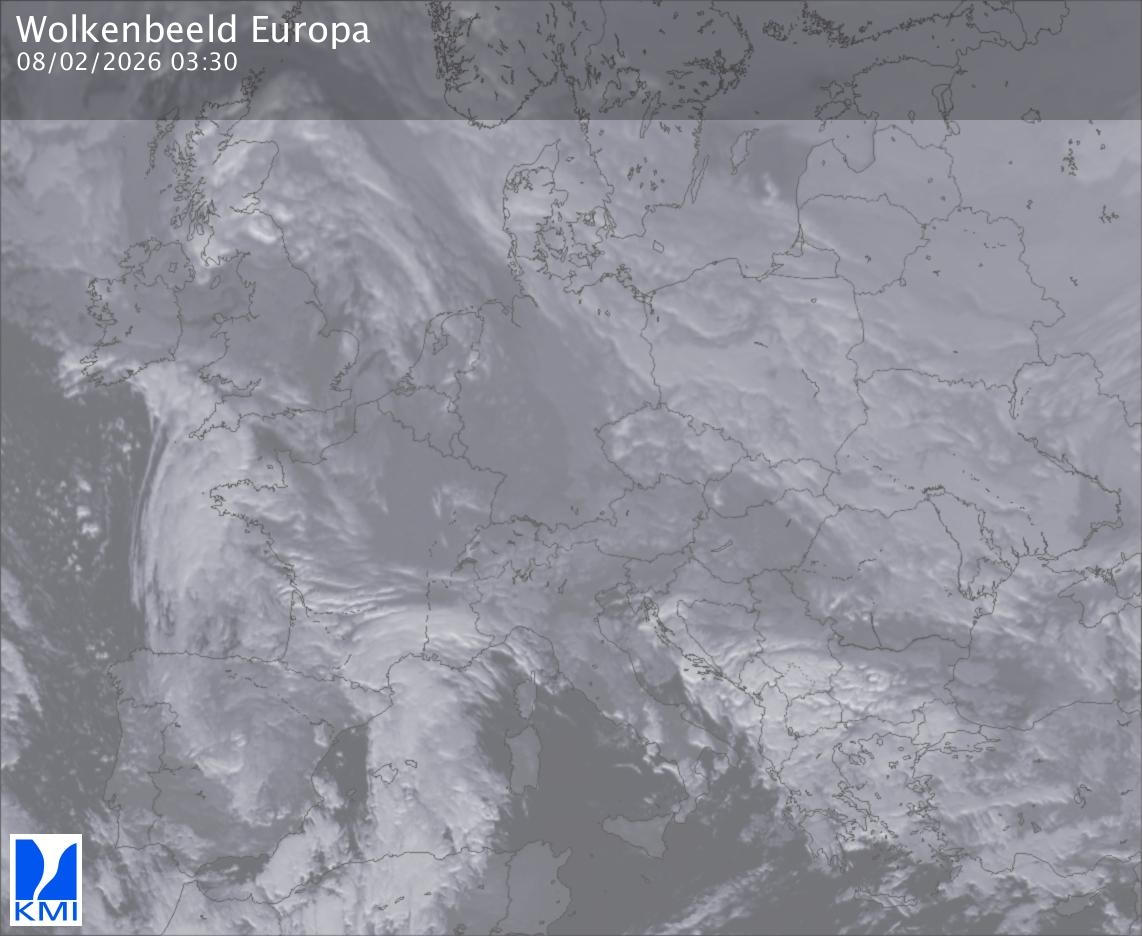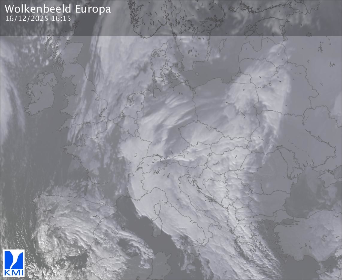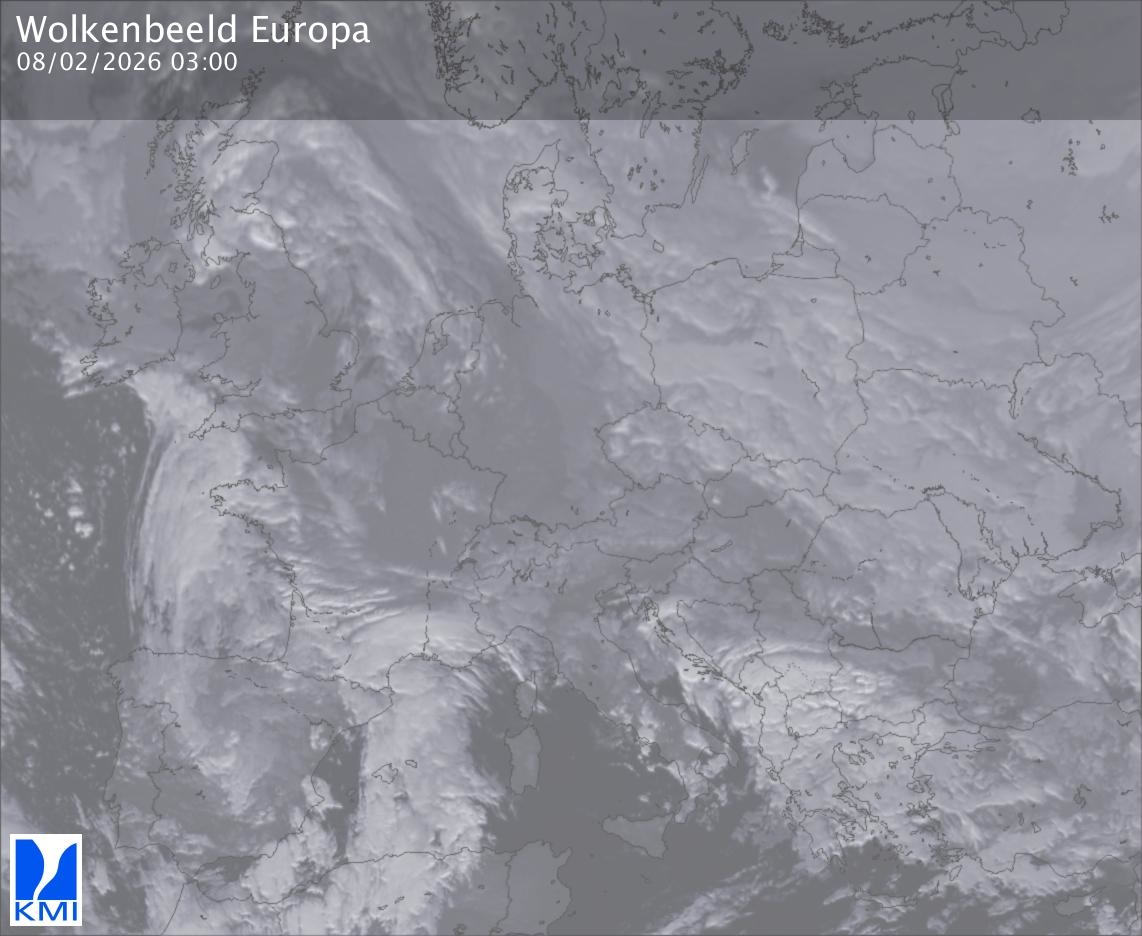 Wolkenbeelden van Europa: een combinatie uit het zichtbare (dag) en infrarode (nacht) spectrum.