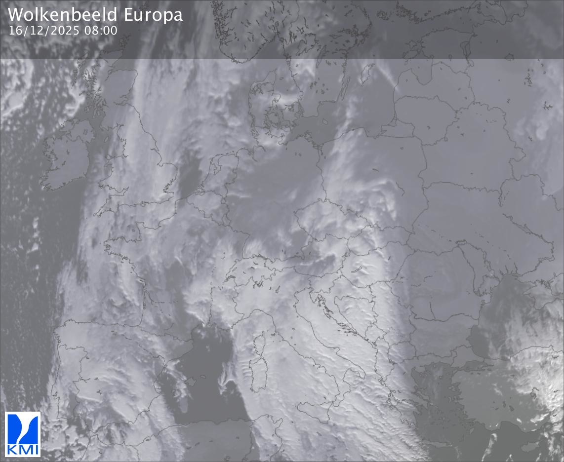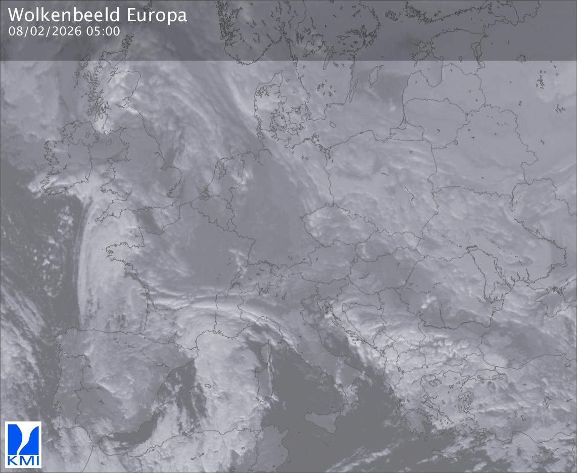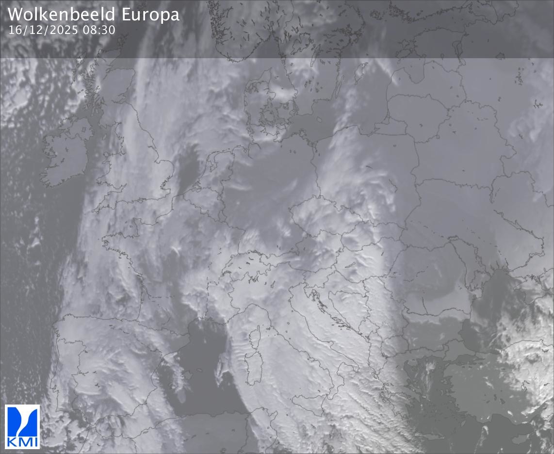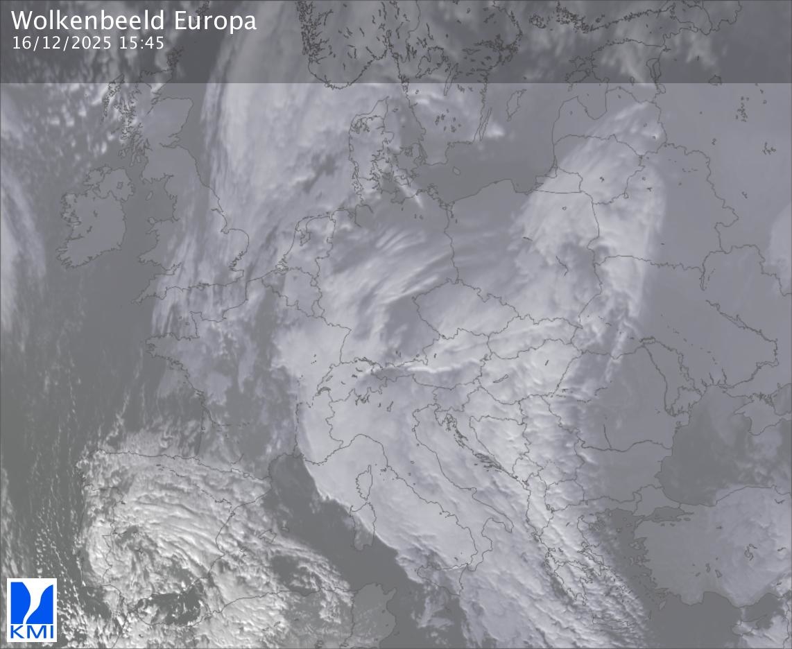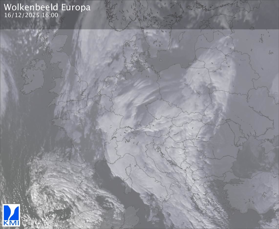 Wolkenbeelden van Europa: een combinatie uit het zichtbare (dag) en infrarode (nacht) spectrum.