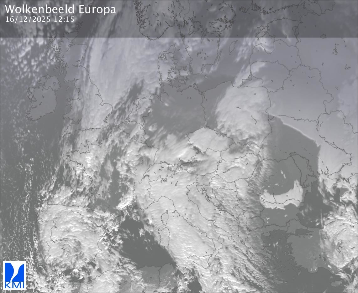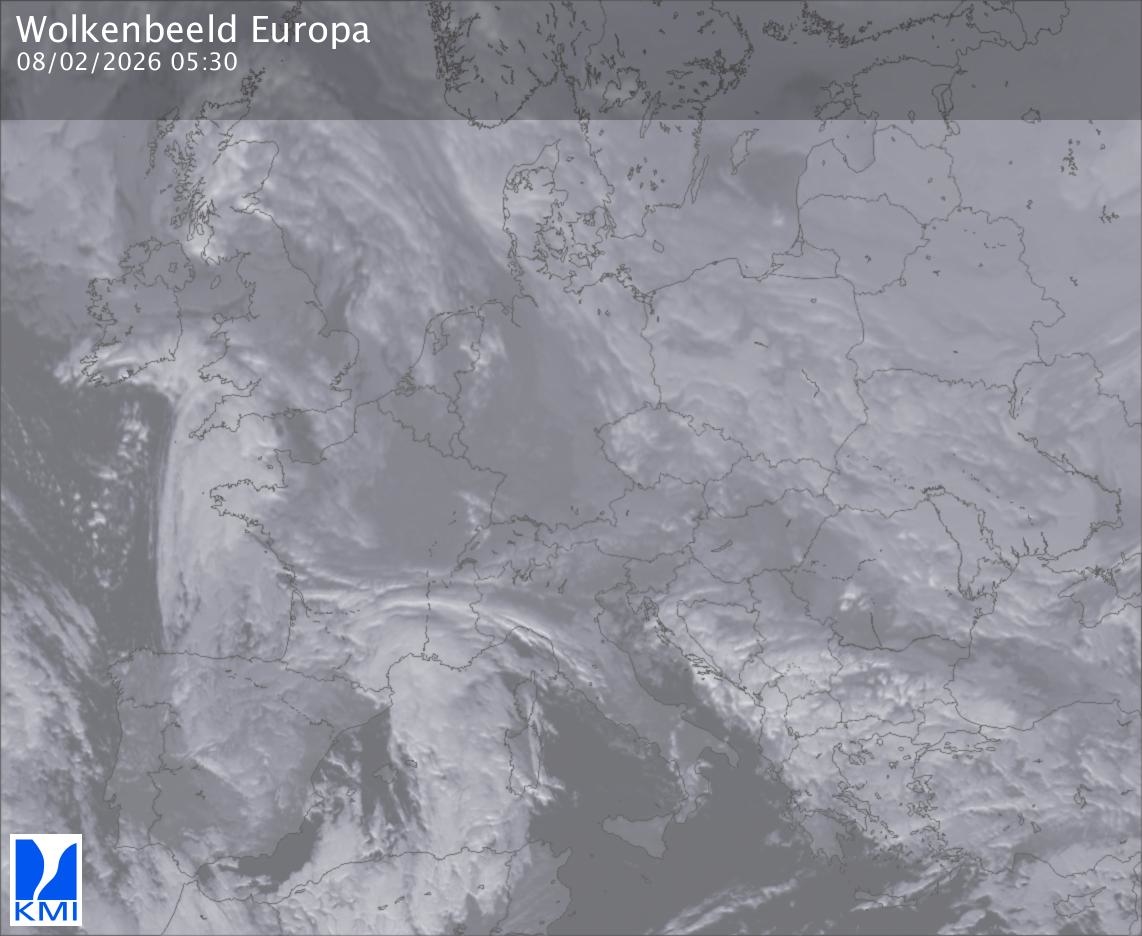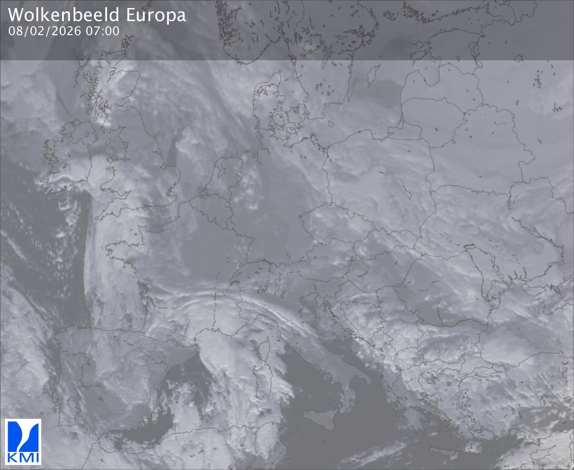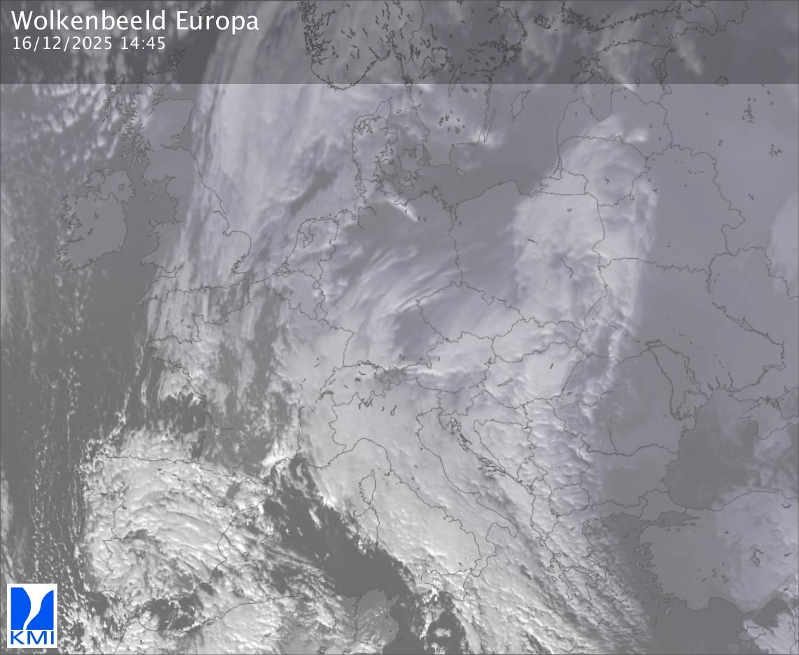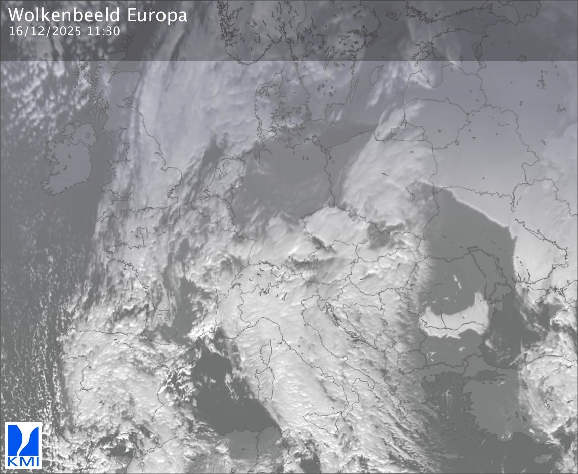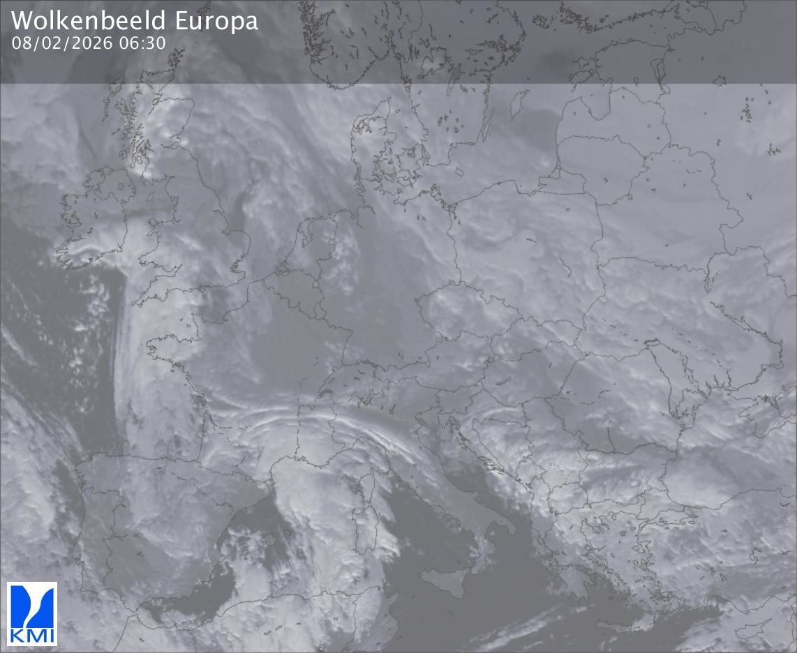 Wolkenbeelden van Europa: een combinatie uit het zichtbare (dag) en infrarode (nacht) spectrum.