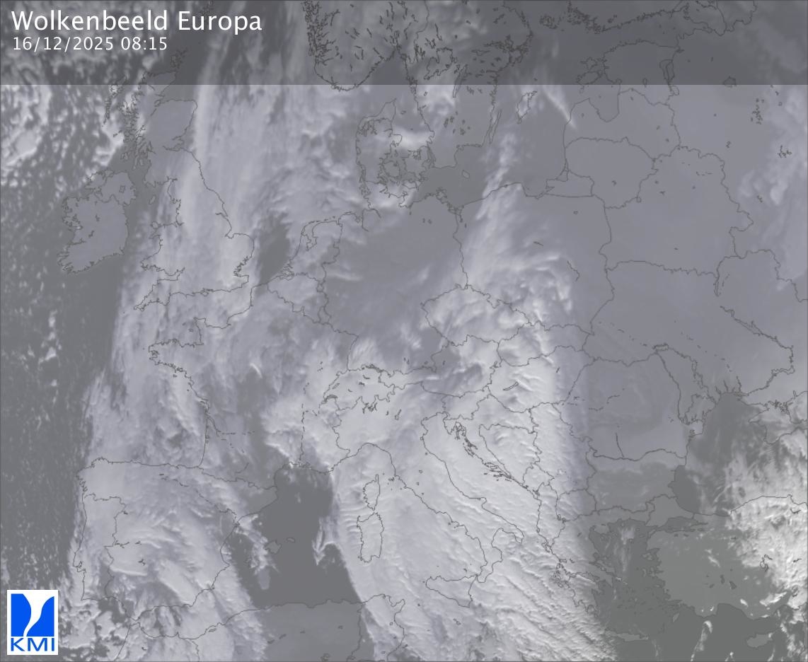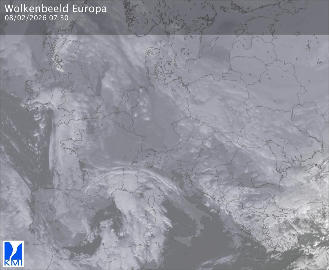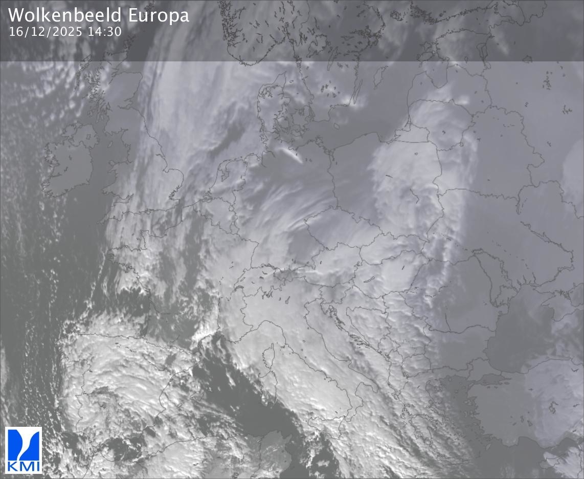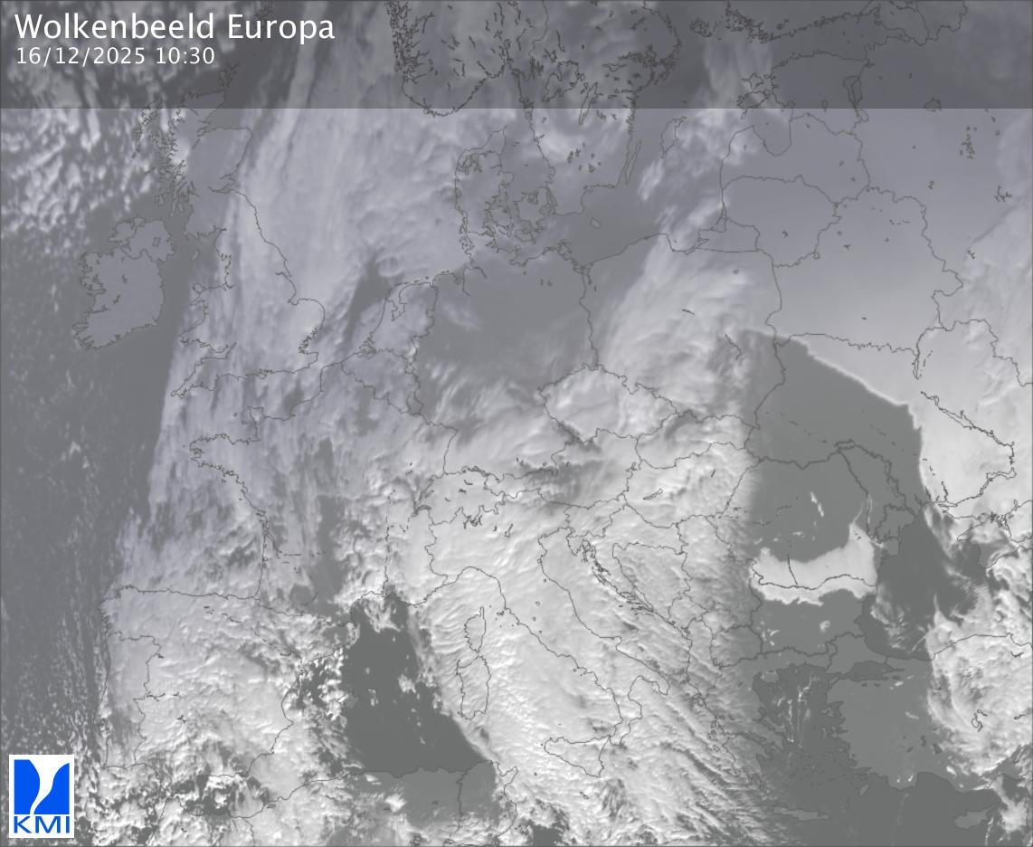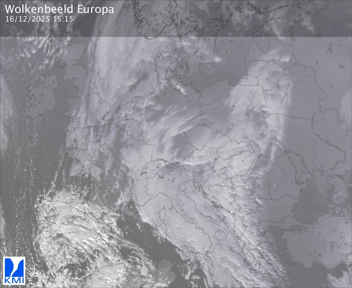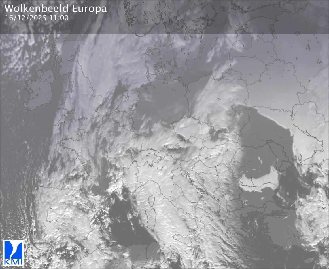 Wolkenbeelden van Europa: een combinatie uit het zichtbare (dag) en infrarode (nacht) spectrum.
